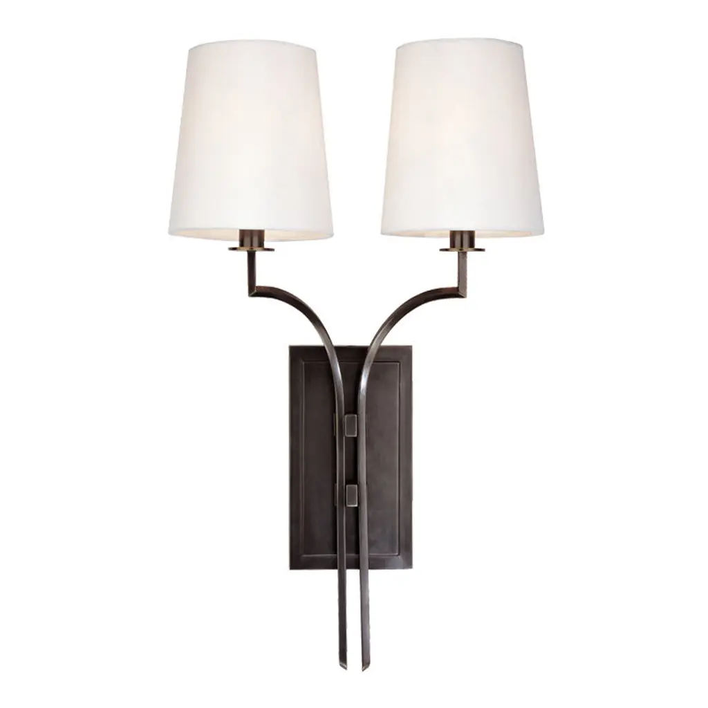 Amalfi 15" Double Sconce in Waxed Black with Linen Shades
