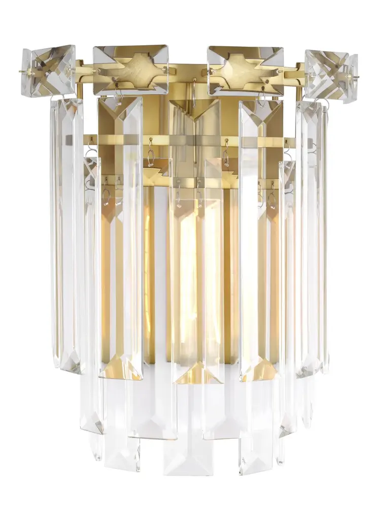 Inspired by the Art Deco style of 1920s Paris, the Arden series from C&M by Chapman and Myers captures the period's fascination with geometric forms. The one light decorative sconce provides abundant light to your home, while adding style and glamorous interest. Designer: Chapman & Myers Extension: 6 7/8 Backplate: DP:5/8'' W:4 1/2'' H:9'' OB UP:4 1/2'' Rectangular Shade/Glass: clear glass Lamping: 1 Torpedo Medium 60 watt light bulb Voltage: 120 Bulb Included: No Safety Rating Location: damp