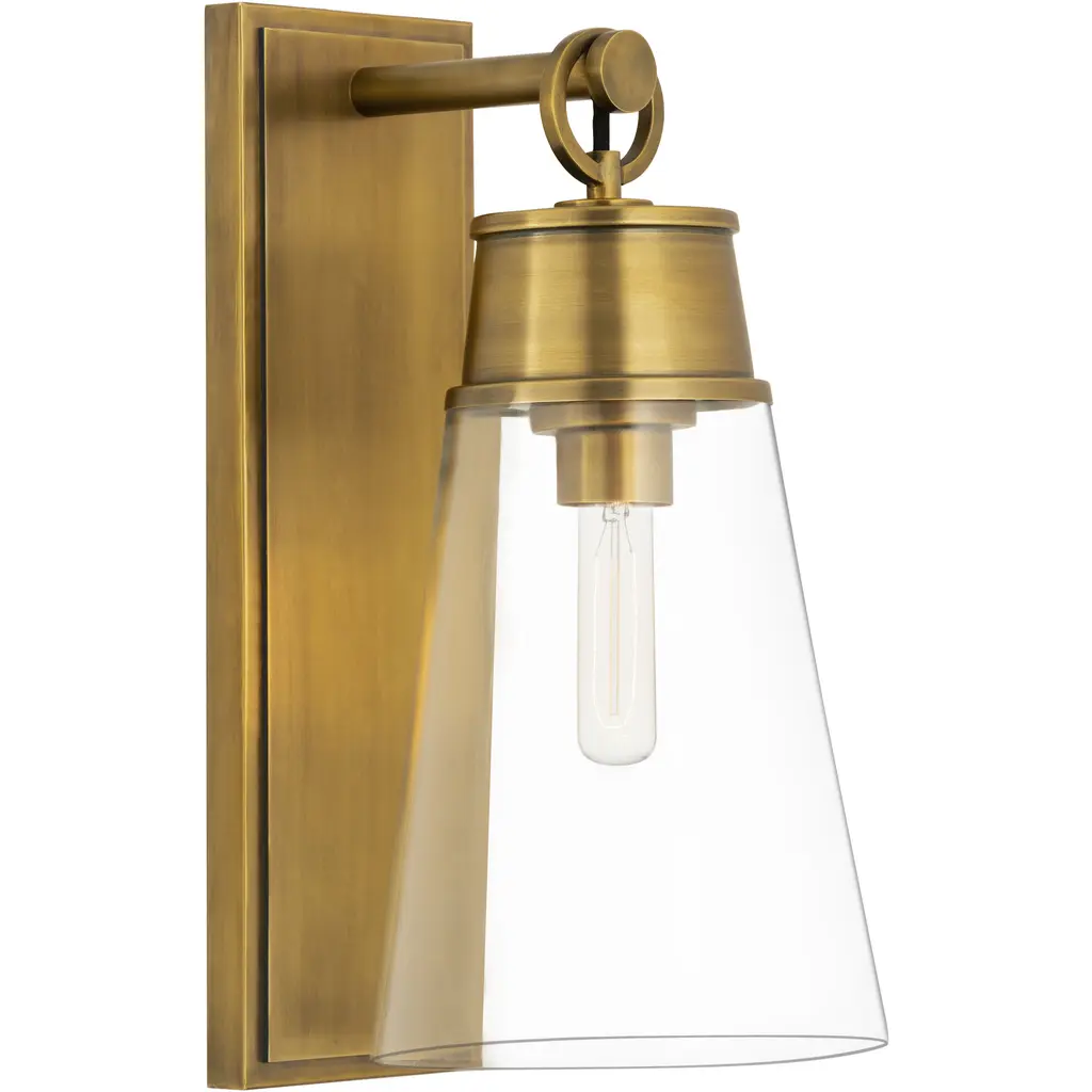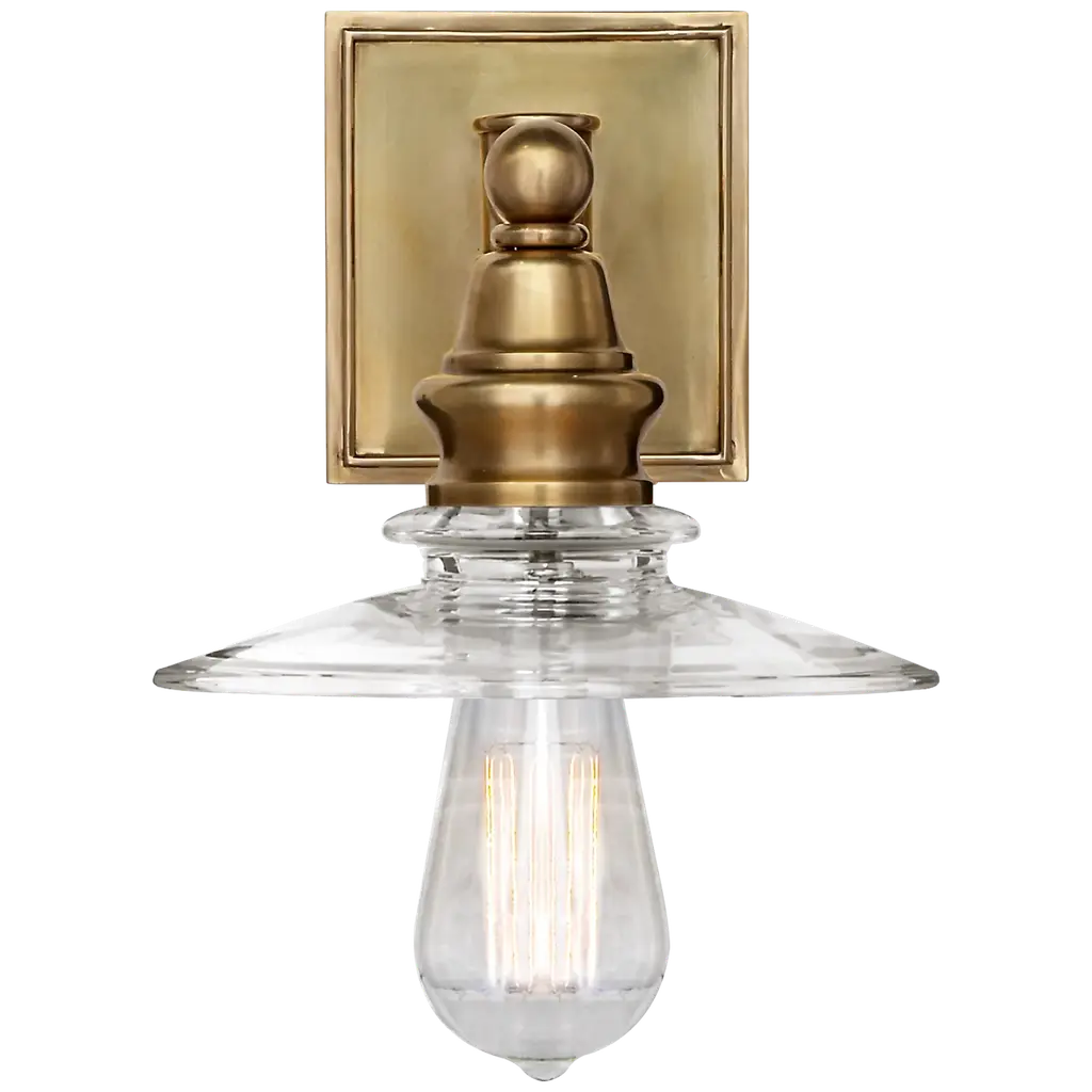 Chapman & Myers For Visual Comfort Signature Covington Shield Sconce In Antique-Burnished Brass With Clear Glass