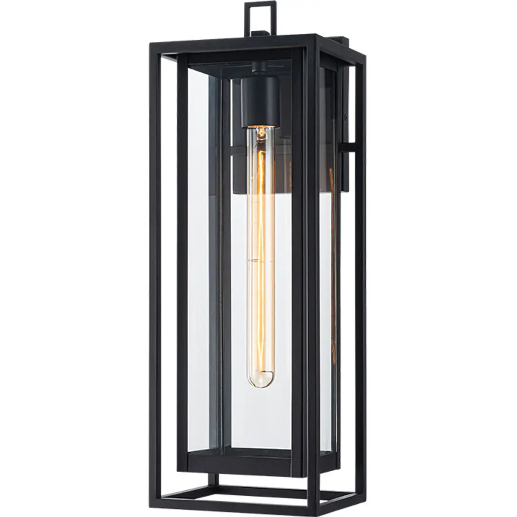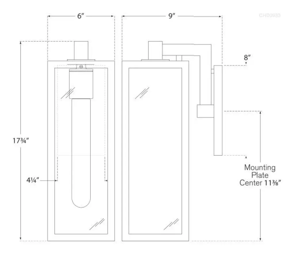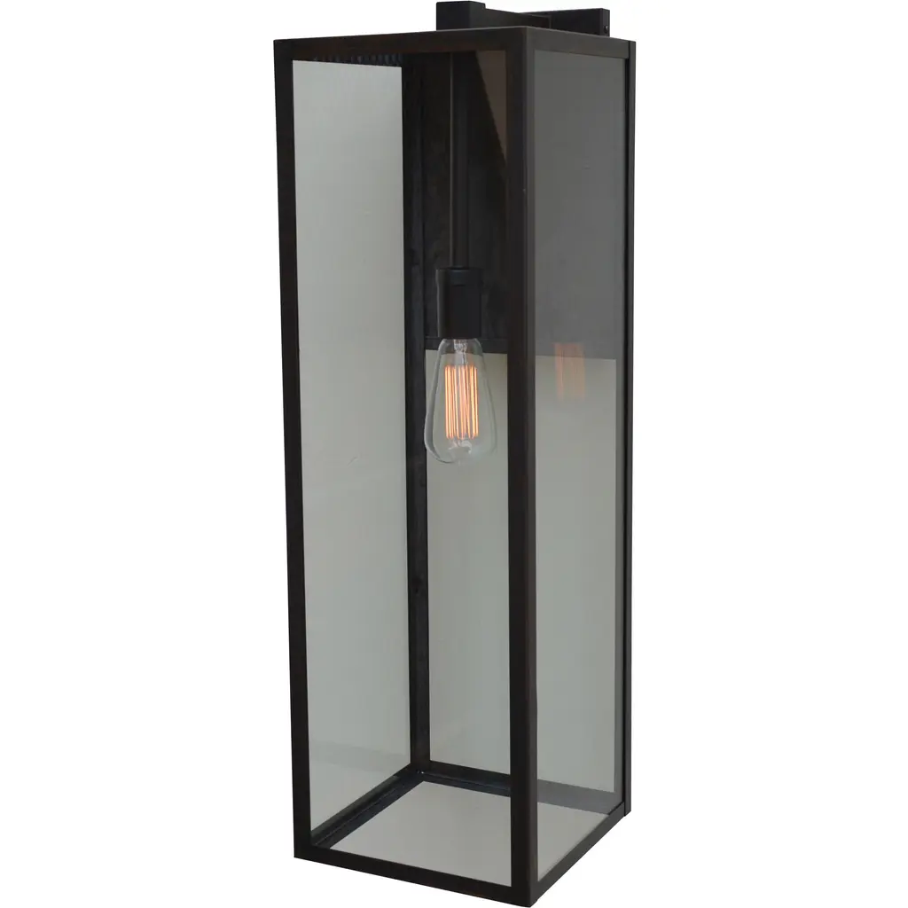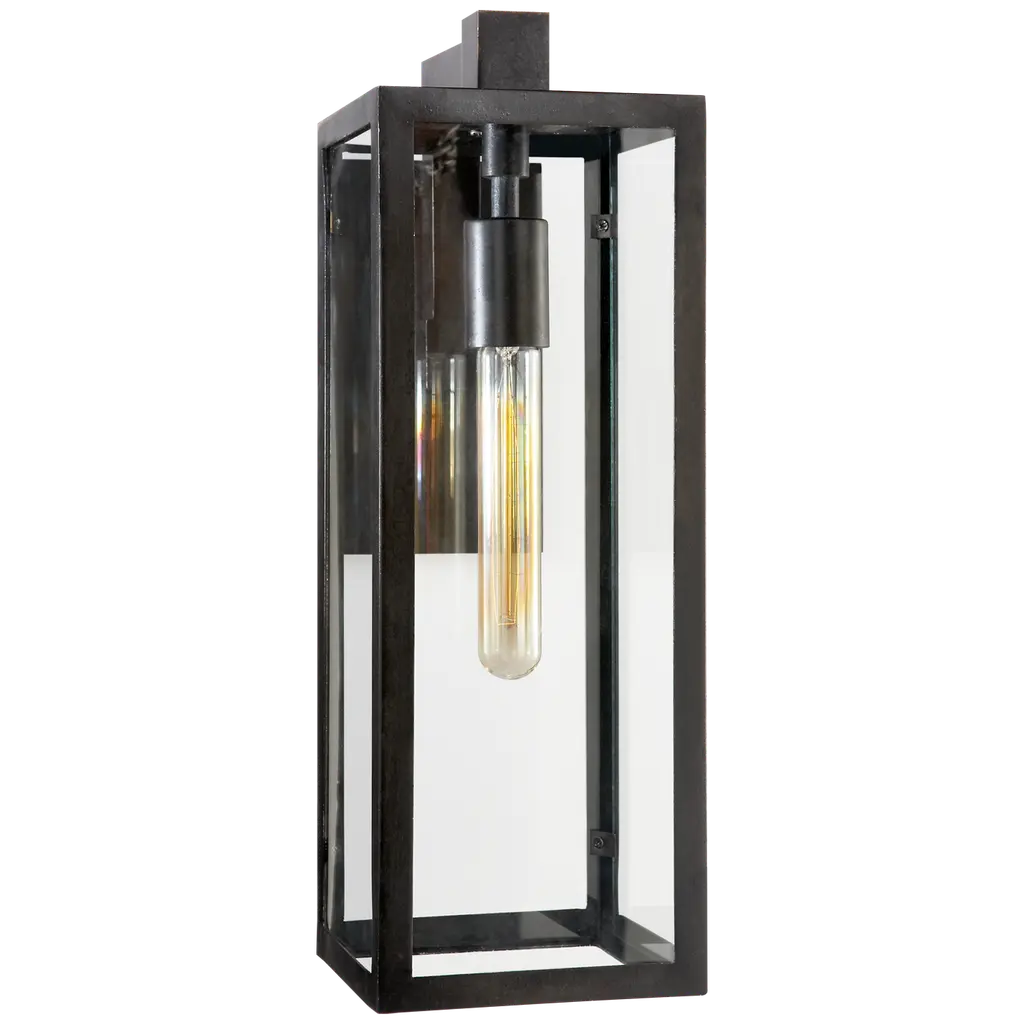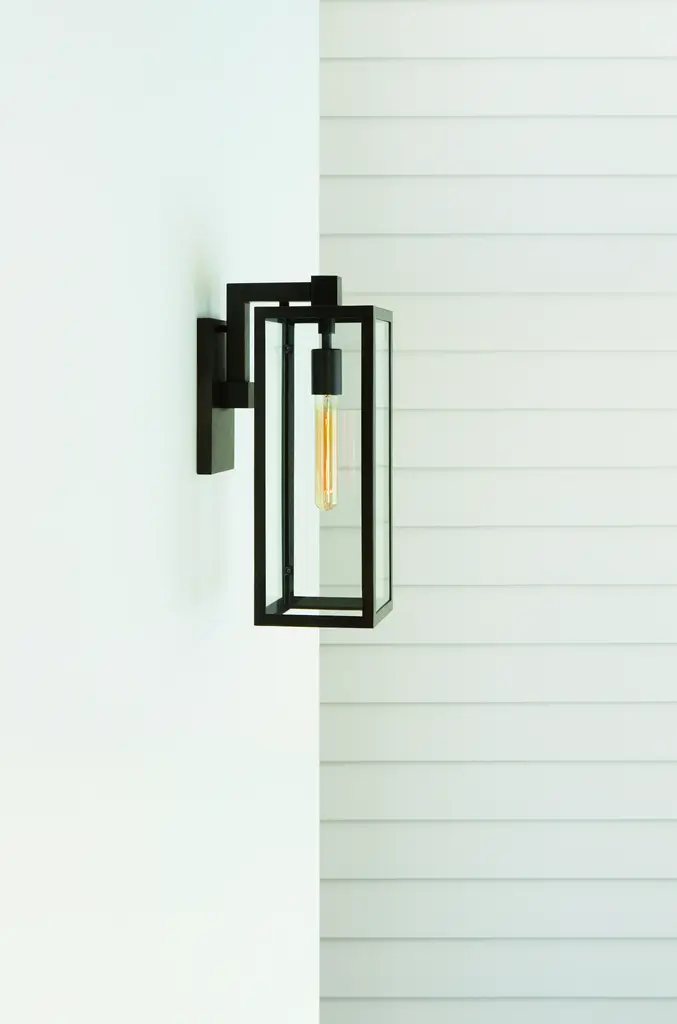 Fresno Framed Medium Sconce in Aged Iron with Clear Glass Designer: Chapman & Myers Height: 17.75" Extension: 9" Backplate: 4.25" X 8" Rectangle Mounting: Hardwire Shade Detail: Clear Glass Socket: E26 Keyless Wattage: 60 T10 Safety Rating Location: WET