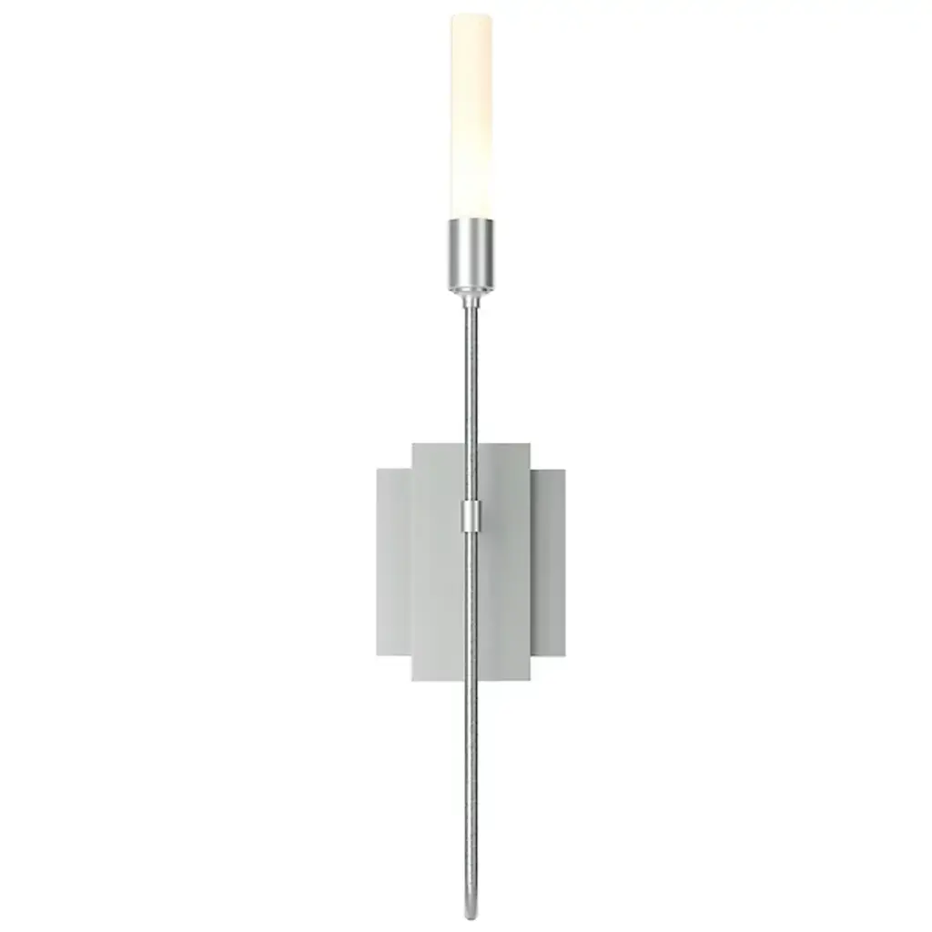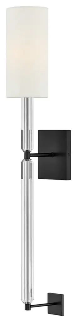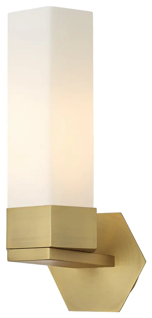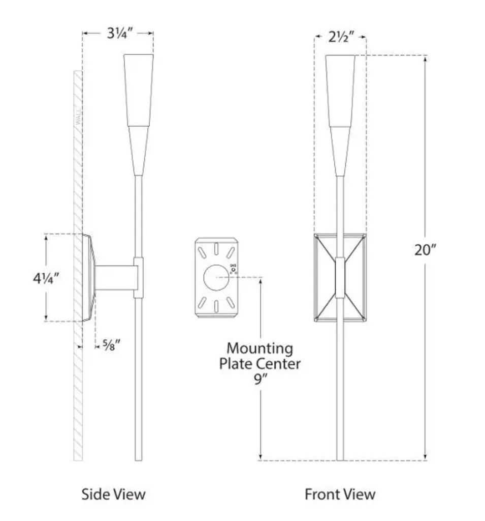 Stellar Single Tail Sconce in Matte Black and Antique Brass with Frosted Acrylic Designer: Chapman & Myers Height: 20" Extension: 3.25" Backplate: 2.5" x 4.25" Rectangle Mounting: Hardwire Socket: Dedicated LED Wattage: 6w (500lm) Safety Rating Location: DAMP Note: Requires Smaller Outlet Box