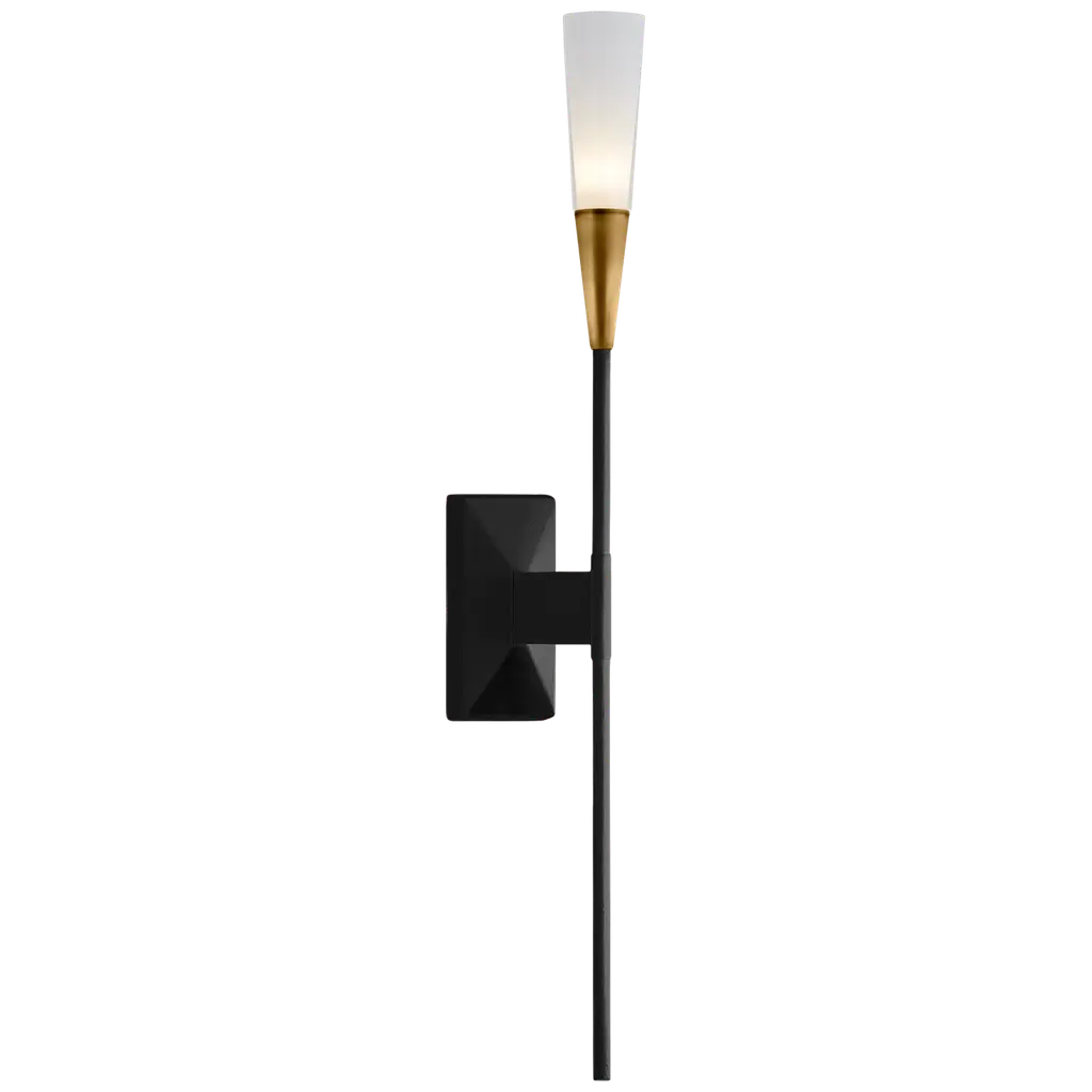 Chapman & Myers For Visual Comfort Signature Stellar Single Tail Sconce In Matte Black & Antique Brass With Frosted Acrylic