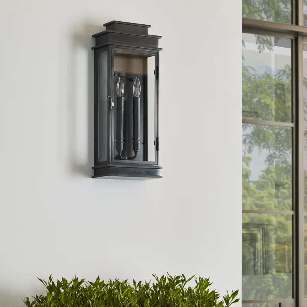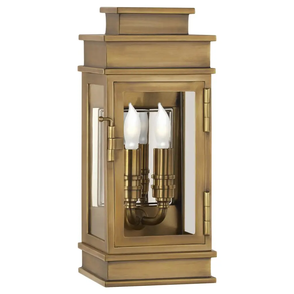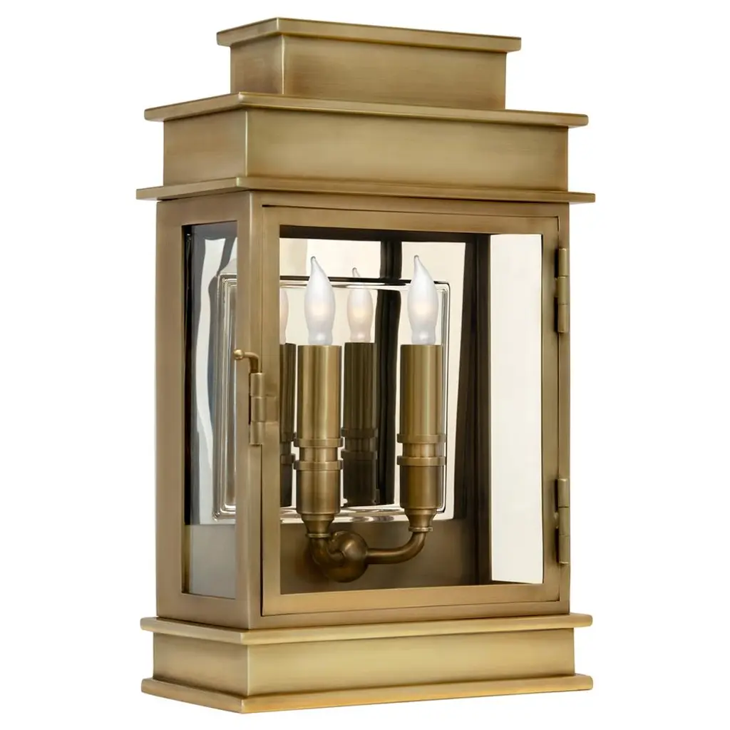 This sophisticated wall light by Chapman & Myers features a sleek brass construction, it offers both aesthetic appeal and resilience against direct water exposure. The dimmable functionality provides flexibility in lighting, perfect for setting the right atmosphere for evening gatherings or quiet nights. This piece is a testament to refined outdoor design, seamlessly blending into various architectural styles while providing reliable illumination.