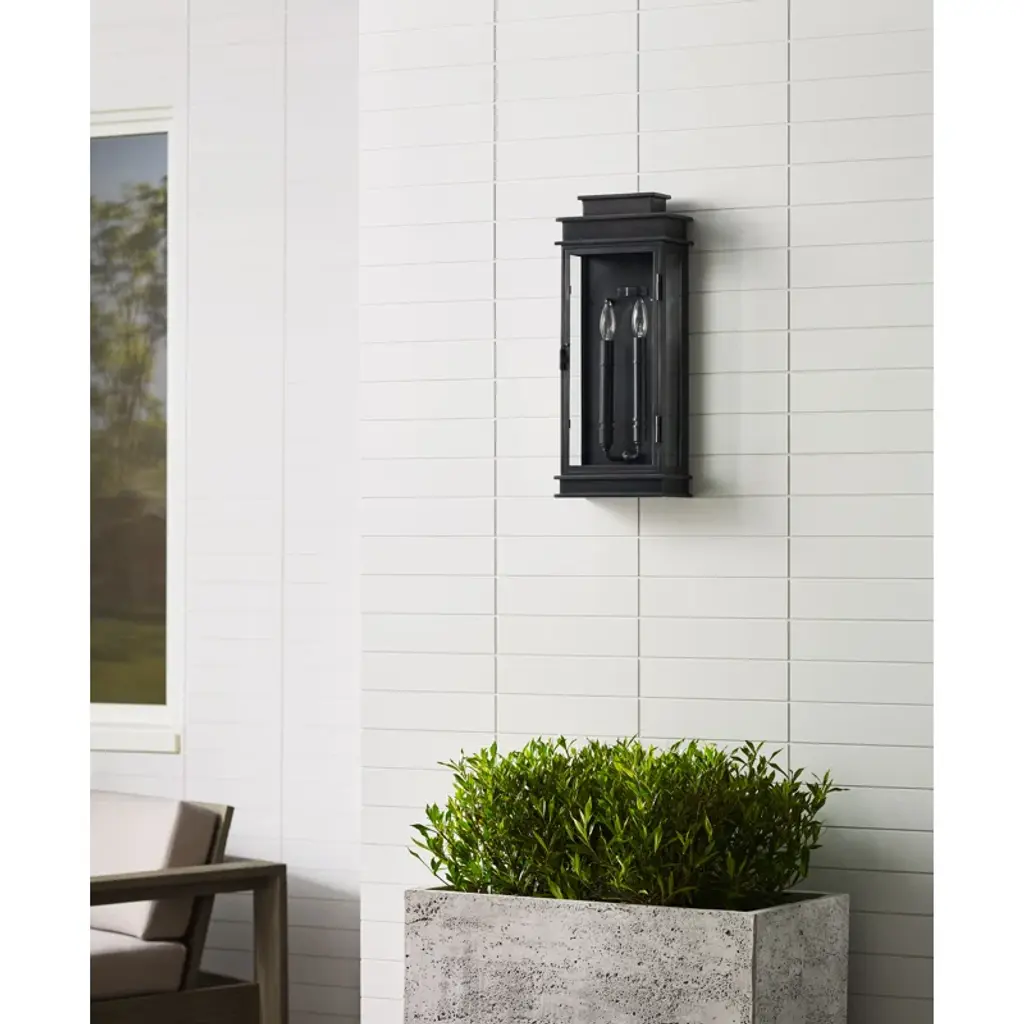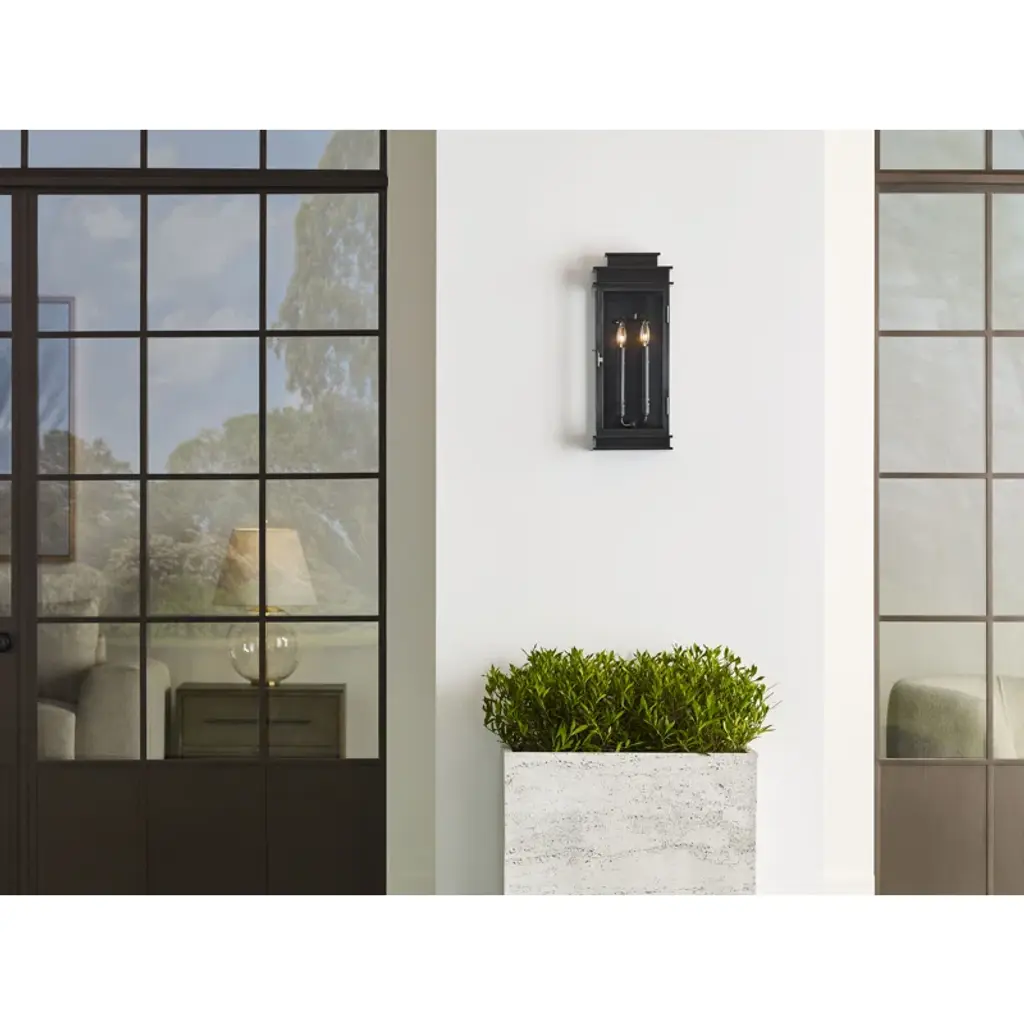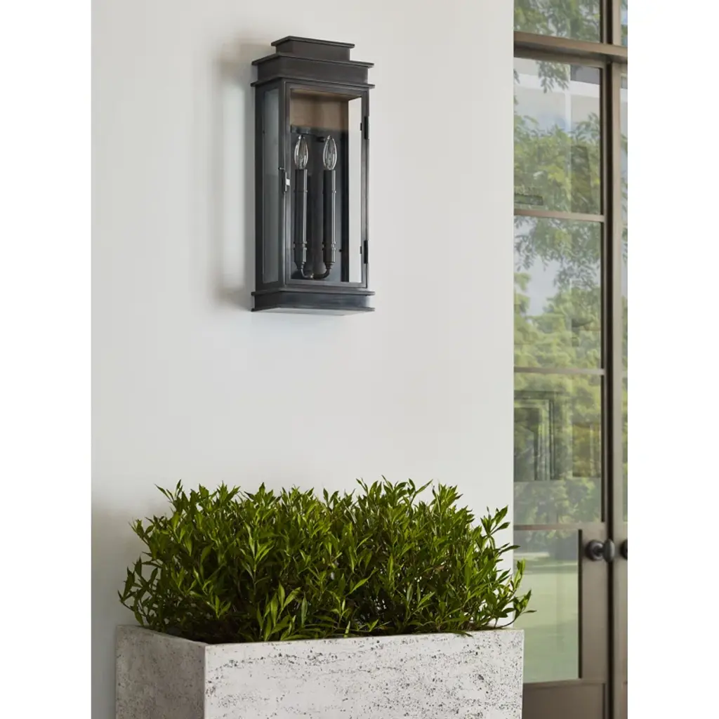 This sophisticated wall light by Chapman & Myers features a sleek brass construction, it offers both aesthetic appeal and resilience against direct water exposure. The dimmable functionality provides flexibility in lighting, perfect for setting the right atmosphere for evening gatherings or quiet nights. This piece is a testament to refined outdoor design, seamlessly blending into various architectural styles while providing reliable illumination.