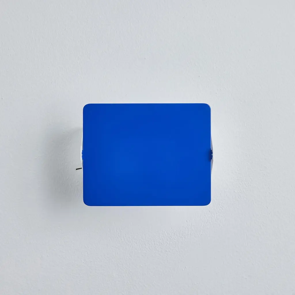 Charlotte Perriand 'Applique à Volet Pivotant' wall light in blue for Nemo. Originally designed in the 1950s as the iconic CP1, these newly produced authorized re-editions are still made in Italy with the highest level of integrity and attention to detail while using many of the same manufacturing techniques, materials and craftsmanship. This fixture accommodates your choice of vertical or horizontal mount and features a pivoting shade to orient the light as needed. A clean and iconic design executed in a blue painted aluminum shade, paired with a white painted metal body, to the exacting standards of Nemo Lighting.Price is per item. All colors and sizes in stock and available for immediate shipment. Available to order in unlimited quantities in white, red, yellow, blue, black anodized aluminum, natural anodized aluminum or polished inox stainless steel as well as two larger sized variants - please see our separate listings for the Applique à Volet Pivotant 'Double' and 'Plié.'In stock and available for immediate shipment. Out of stock lead time is 8-10 weeks or longer. Stock levels and lead time are subject to change at any time and without notice. Please inquire for current stock and lead time prior to placing time-sensitive orders.Accommodates a single maximum 8w equivalent US candelabra E12 base LED bulb (bulb not included). Dimmable according to bulb and switch. This lamp features a metal on/off toggle switch on the body of the lamp that can also be used, in addition to a wall switch. UL listed and hardwired for US electrical, this lamp mounts to a standard US j-box. Optional 4-inch square mounting backplate is included with each lamp.Made to order. All sales final.