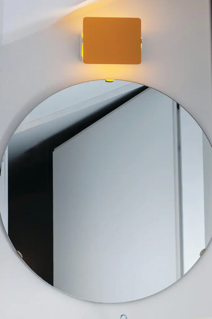 Charlotte Perriand mirrored 'Applique à Volet Pivotant' wall light. Originally designed in the 1950s as the iconic CP1, these newly produced authorized re-editions are still made in Italy with the highest level of integrity and attention to detail while using many of the same manufacturing techniques, materials and craftsmanship. This fixture accommodates your choice of vertical or horizontal mount and features a pivoting shade to orient the light as needed. A clean and iconic design executed in a polished stainless steel shade, paired with a white painted metal body, to the exacting standards of Nemo Lighting.Price is per item. All colors and sizes in stock and available for immediate shipment. Available to order in unlimited quantities in white, red, yellow, blue, black anodized aluminum, natural anodized aluminum or polished inox stainless steel as well as two larger sized variants - please see our separate listings for the Applique à Volet Pivotant 'Double' and 'Plié.'In stock and available for immediate shipment. Out of stock lead time is 8-10 weeks or longer. Stock levels and lead time are subject to change at any time and without notice. Please inquire for current stock and lead time prior to placing time-sensitive orders.Accommodates a single maximum 8w equivalent US candelabra E12 base LED bulb (bulb not included). Dimmable according to bulb and switch. This lamp features a metal on/off toggle switch on the body of the lamp that can also be used, in addition to a wall switch. UL listed and hardwired for US electrical, this lamp mounts to a standard US j-box. Optional 4-inch square mounting backplate is included with each lamp.Made to order. All sales final.