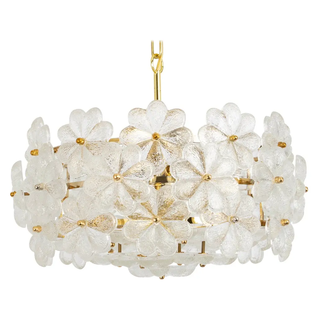 Crafted of steel with a natural brass finish and bevy of clear crystal flowers, this fixture adds a refreshing, spirited note to any space. Hardwired.