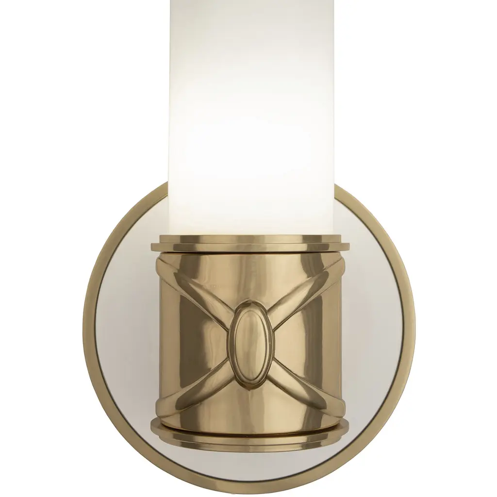 Illuminate your space with the sophisticated chase wall sconce by Robert Abbey. This sleek fixture features a crisscrossed design, adding a modern touch to any area. Perfect for styling in living rooms or hallways, this wall sconce provides ambient lighting with its polished cased white glass shade.