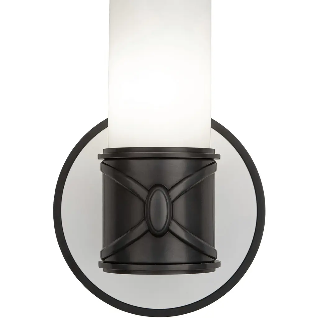 Illuminate your space with the sophisticated chase wall sconce by Robert Abbey. This sleek fixture features a crisscrossed design, adding a modern touch to any area. Perfect for styling in living rooms or hallways, this wall sconce provides ambient lighting with its polished cased white glass shade.