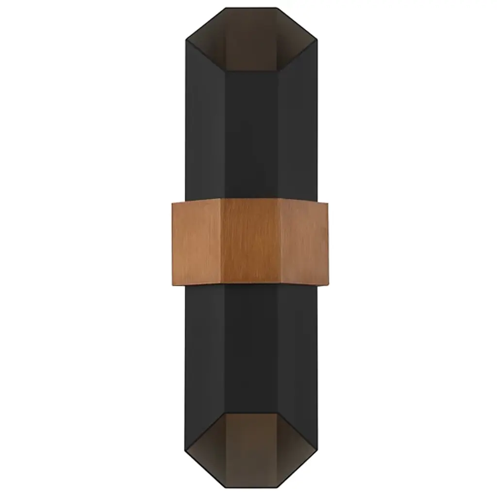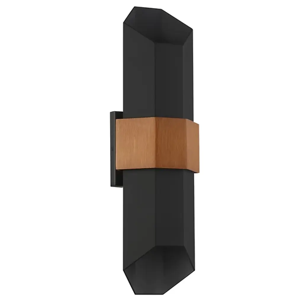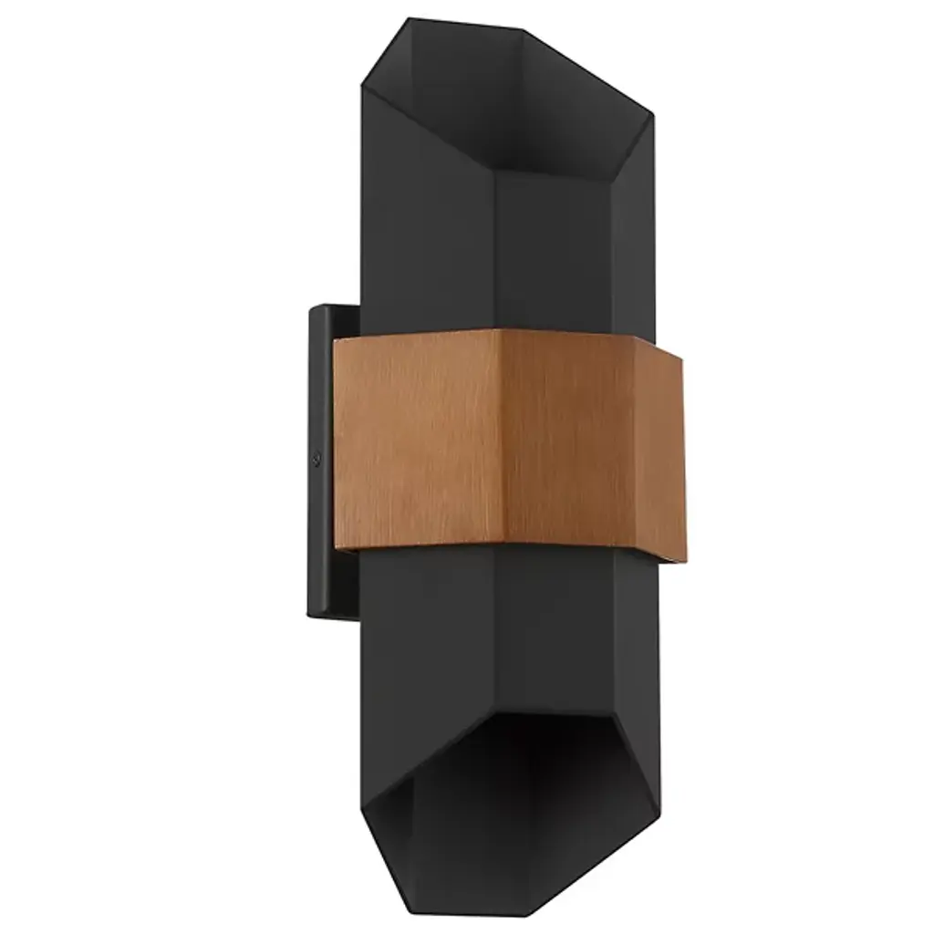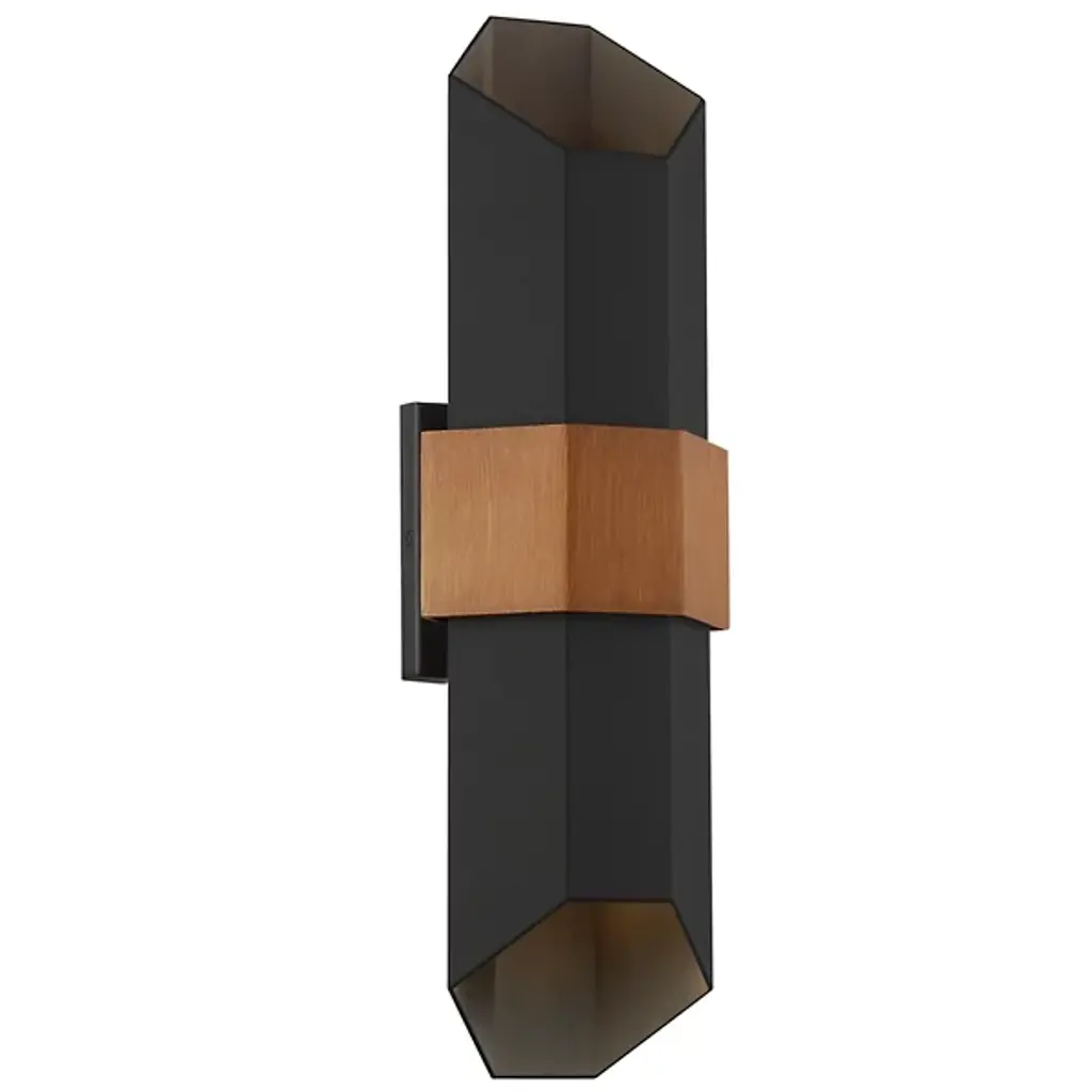 Give your favorite space the geometric silhouette of the Chasm LED Outdoor Wall Sconce from Quoizel. A thin square backplate mounts a wide painted wood band that wraps around the center of a hexagonal body. Open from both ends, maximum light flow is guaranteed from the integrated, energy-efficient LED that rests inside at the center. The interior of the structure glows, creating an inviting, ambient touch perfect for the exterior of your home.