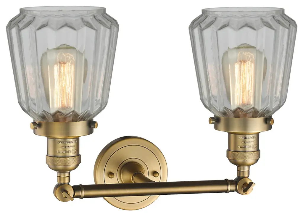 Chatham 2-Light Bath Fixture, Clear Fluted Glass, Brushed Brass