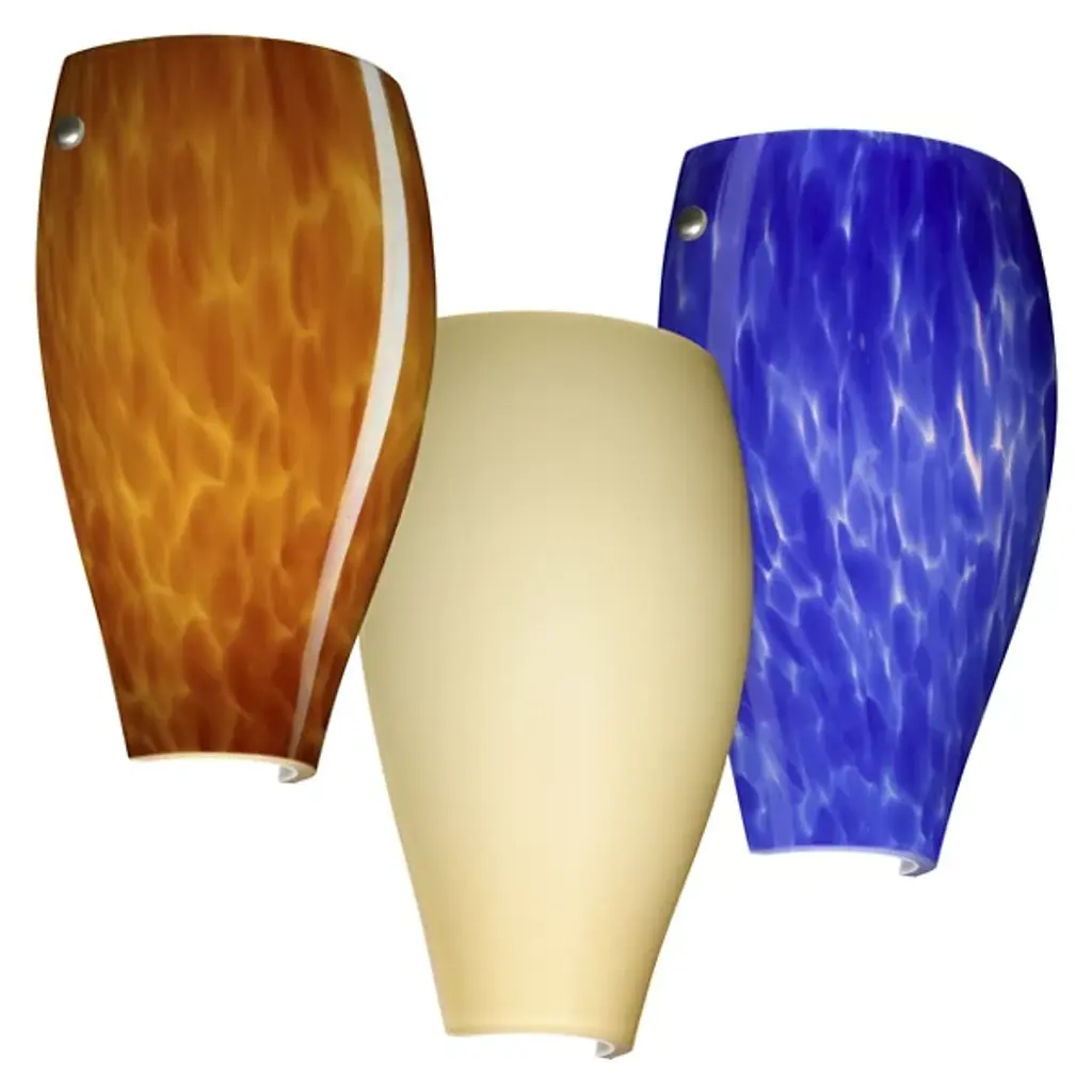 The curved shape gives the Besa Lighting Chelsea Wall Sconce its attractiveness and drama. Light escapes through the narrow bottom and wide top of the shade and forms a fascinating light display on a wall. Offered in a number of beautiful handcrafted glass styles that each create a unique quality of light.