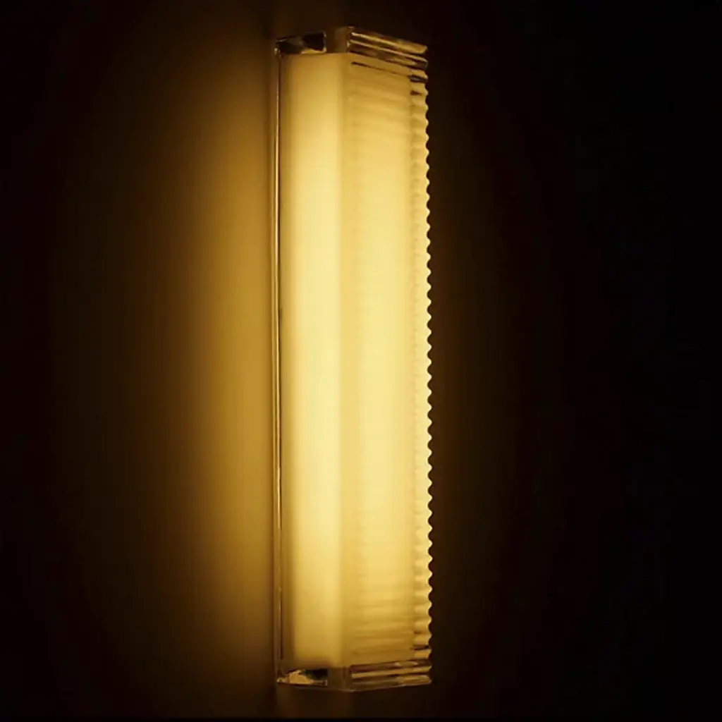 Make an unforgettable addition to indoor walls with the Chip LED Wall Sconce from RBW. Inviting, stylish, and eloquently avant-garde, its simple surface hearkens back to similar retro fixtures while showcasing a refined appeal that can play indoors or outside with ease. An aluminum structure secures damp-listed and ADA-compliant integrated LED lamping beneath a thick rectangular prism diffuser of solid cast glass, blunting bright glare and protecting the lamping. This diffuser’s outer surface is grooved with small ruffles that bring a pleasant tactile complexity to the fixture’s minimalist simplicity while refracting and distributing warm ambiance across a larger area.