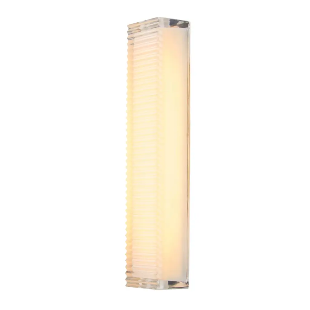 The Chip Outdoor LED Wall Sconce exemplifies refined minimalism through its meticulously crafted surface-mounted design. This sophisticated exterior luminaire features a clear, solid glass body distinguished by familiar grooves that elegantly extend the fixture's illumination reach. These precisely executed scores serve dual purposes—enhancing light distribution while introducing a subtle textural quality that elevates the sconce's restrained aesthetic. The painted interior creates a nuanced interplay between material and illumination, resulting in a lighting experience that is both visually compelling and atmospherically rich. Highlights