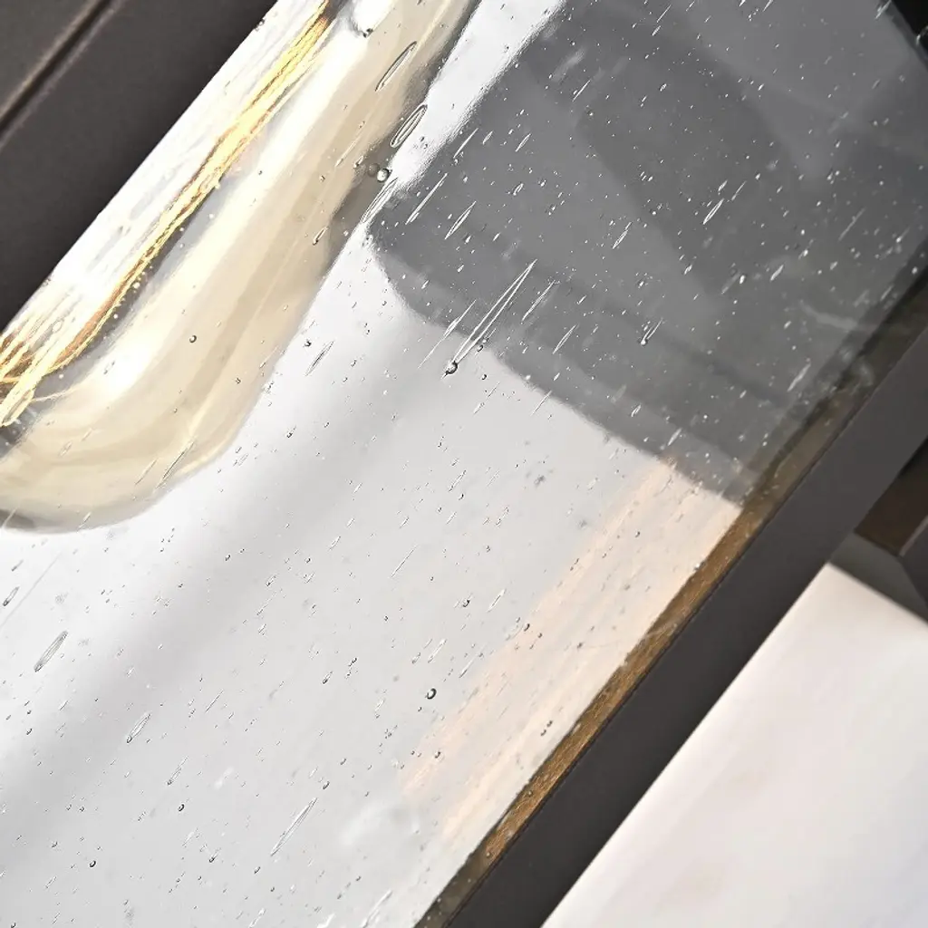 Modernize your home with this lovely, rubbed bronze out door walls sconce! This fixture is recantangular in shape, and surrounds seedy glass inserts. It also has an open base, making light bulbs changed very easy. The fixture takes one 100W bulb and is compatible with flourescent, incandescent and LED bulbs. All of our wall sconces are UL listed, and dry, damp and wet listed, to survive all weather conditions, hot and cold.