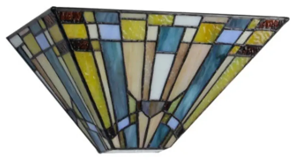 KINSEY, a beautifully Mission style hand-crafted wall mount sconce with intricate designed and cut glass shade. Lamp shade design features multi-toned antique colored pieces accented with a row of matching cut circles. Coated in an antique bronze patina tone. Expertly crafted with top quality materials.(1) 60 Watt max E26 Type A Bulb (not included)Hardwired, Wall outlet switch118pcs glass cutUplightIndoor SettingSince these are hand crafted products, the exact color of glass pieces may vary. Colors of the glass will appear darker and less vibrant when not illuminated. Handmade glass will vary from one piece to the other; glass made at different times will also vary. Light bulbs used in lamps or ambient lighting may affect the appearance of the products. Stained glass product has been protected with mineral oil as part of the finishing process. Please use a soft dry cloth to remove any excess oil.