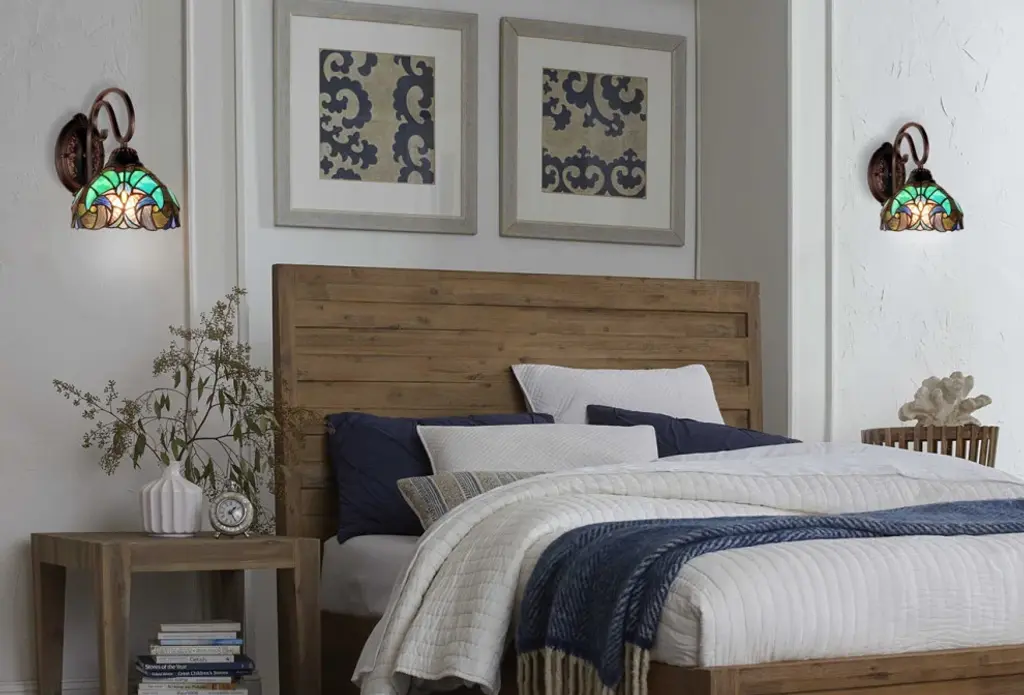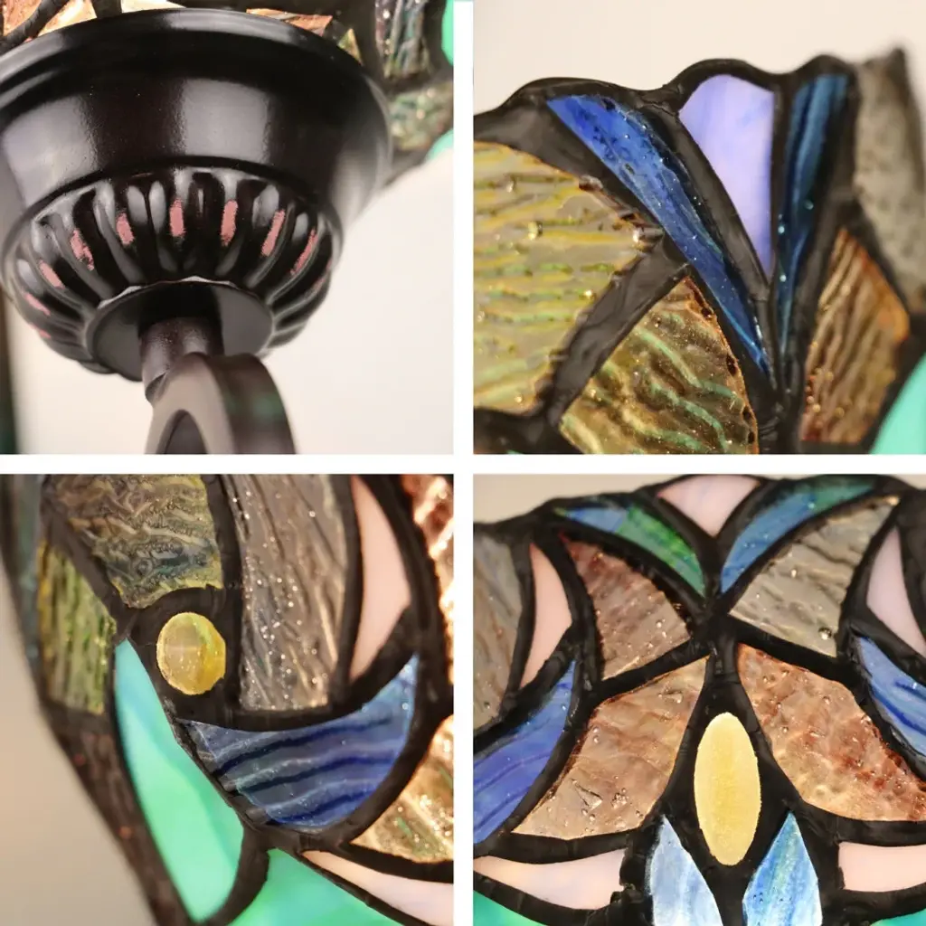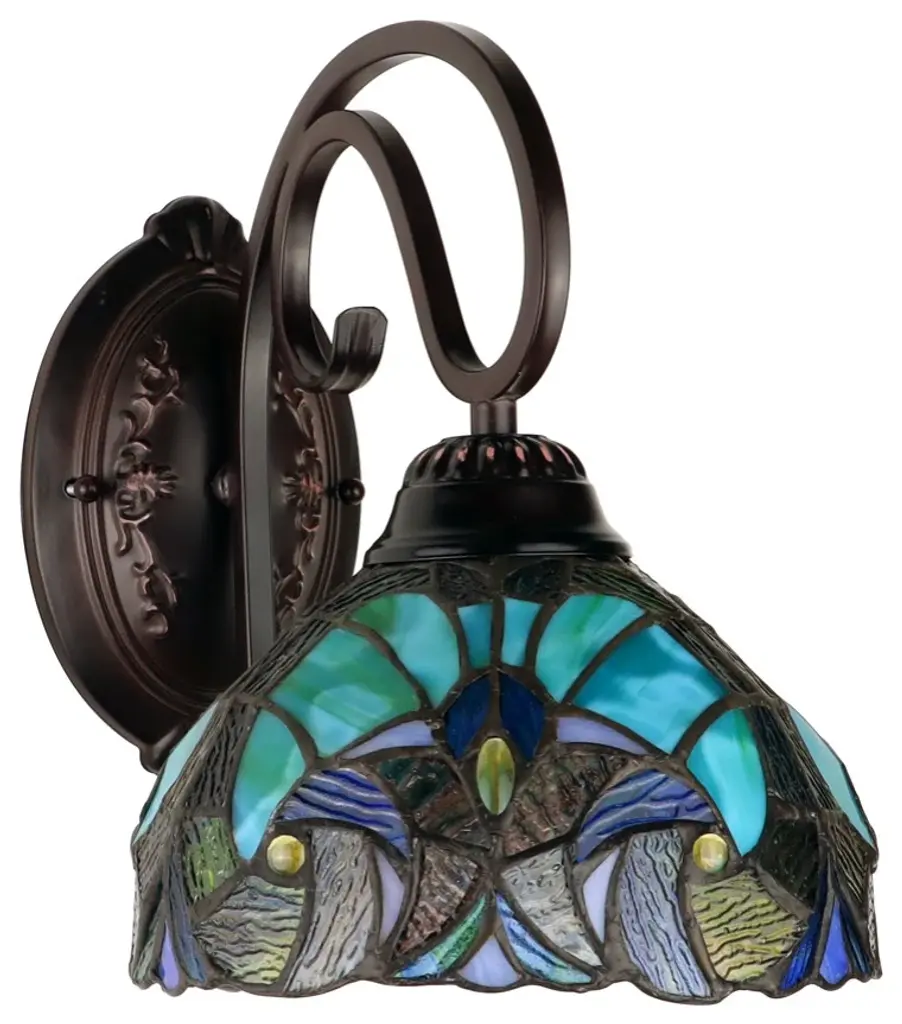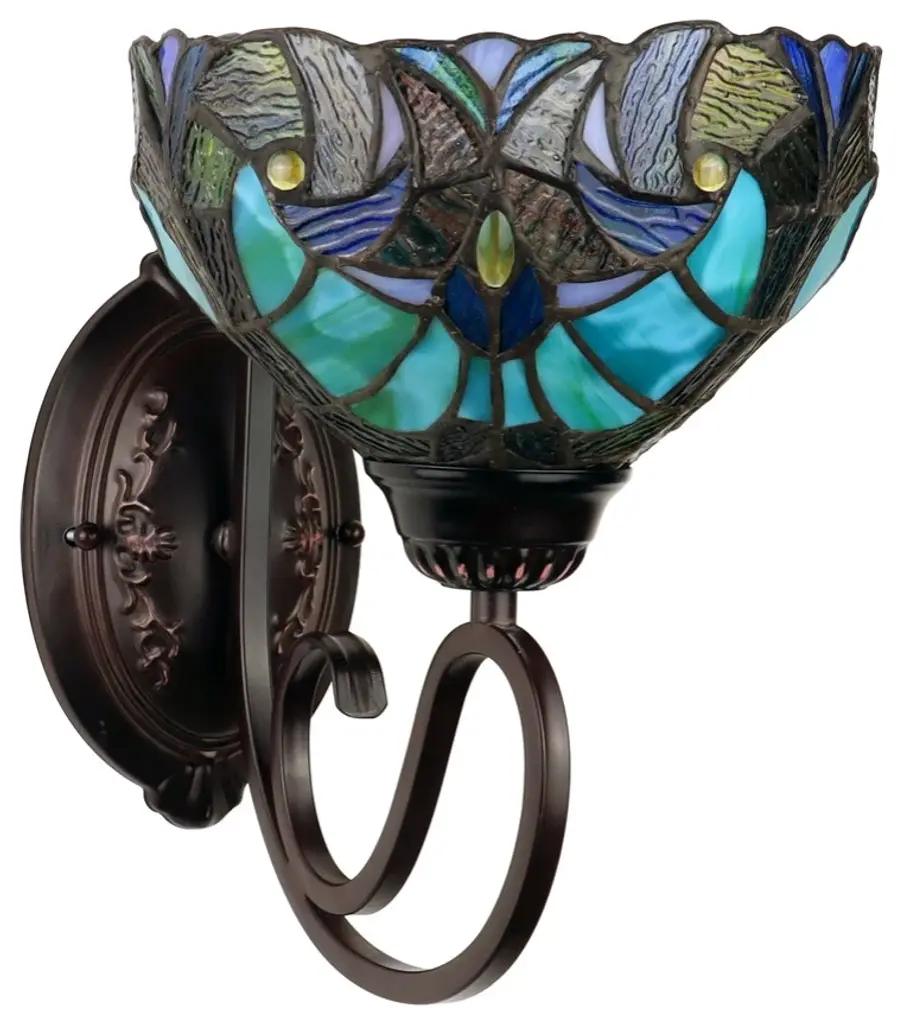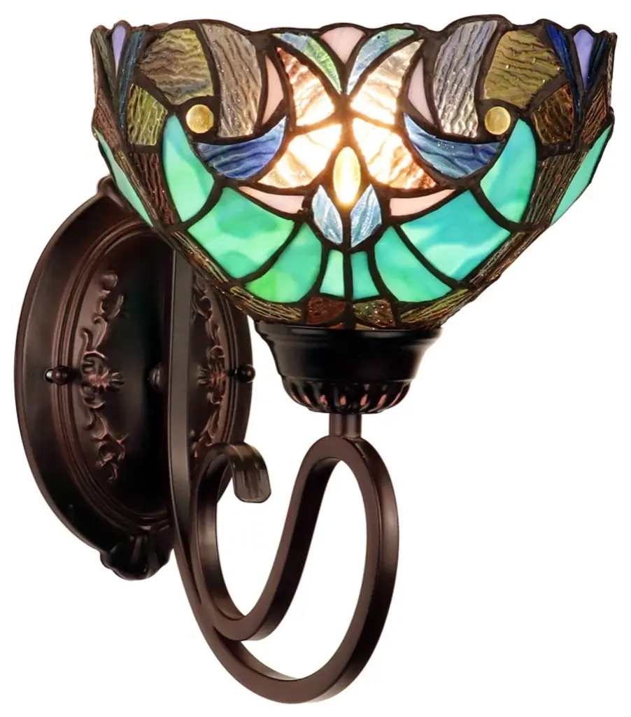 This Victorian design 1-light Tiffany-style indoor wall sconce would perfectly fit a bedroom, hallway, and living room! The shade is hand-crafted, using the same methods developed by Louis Comfort Tiffany in the early 1900s. This process entails using 112 hand-cut stained art glass pieces and 9 glass beads, each wrapped in fine copper foil and soldered together at extremely high temperatures to form each unique piece. The The exact size to the nearest inch may vary, and the the exact color of each glass piece may vary due to each piece being hand-crafted. The The first image is with the light shining through, the the second image is with no light. Dry-listed and recommended for an indoor setting.