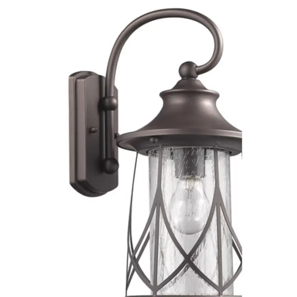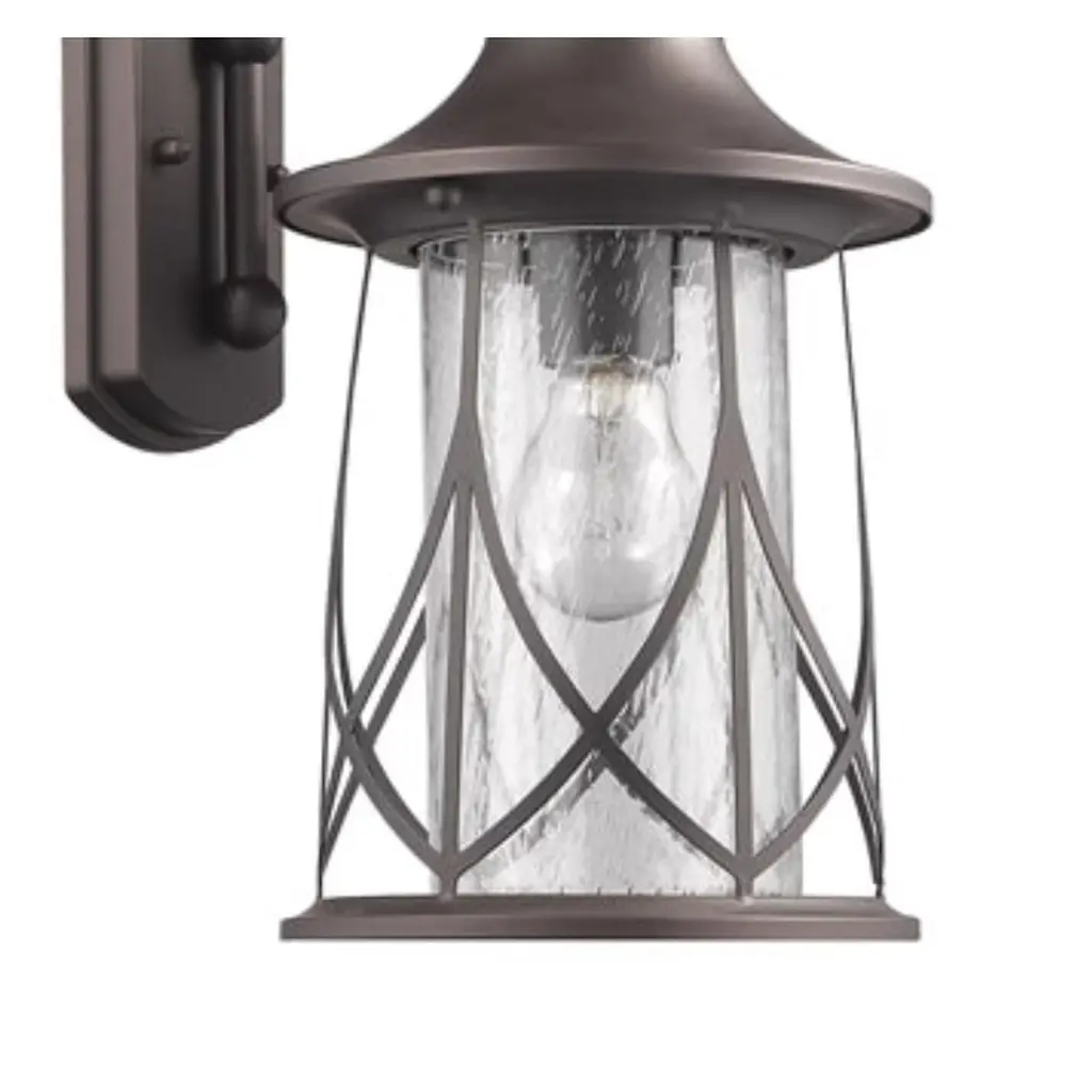 Elevate your exterior lighting with the Marhaus Outdoor Wall Sconce, a transitional piece that blends durability with understated elegance. Its oil rubbed bronze finish and clear seedy glass shade offer classic style and a warm, welcoming glow. Designed to withstand the elements, this weatherproof sconce is ideal for entryways, patios, and exterior walls. Key Features: Uses (1) 60W max E26 Type A bulb (not included) for warm, down-facing illumination Clear seedy glass shade adds texture and charm to exterior spaces Built from steel and glass for reliable, weather-resistant performance Finished in oil rubbed bronze for a rich, traditional look Dimensions: 14.5"H x 7"W x 8.75" Projection | Net Weight: 2.9 lbs