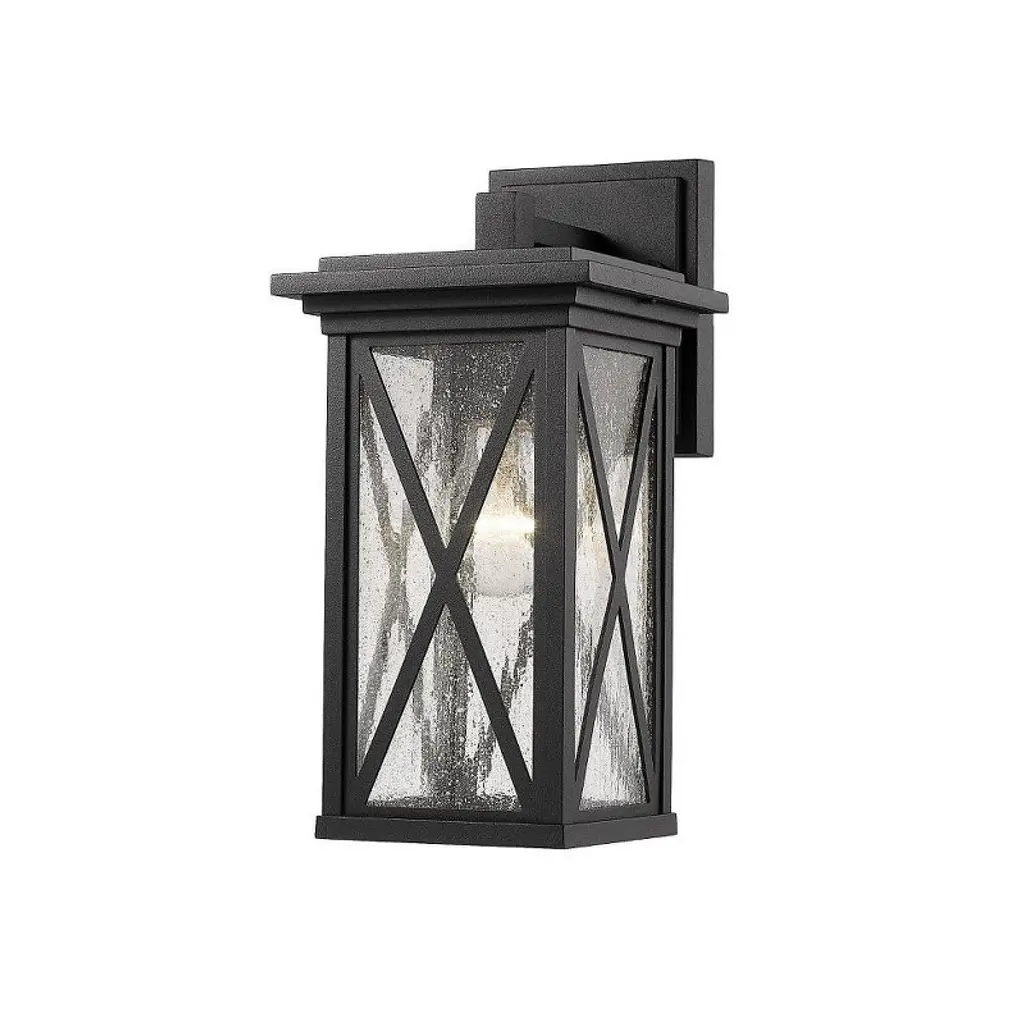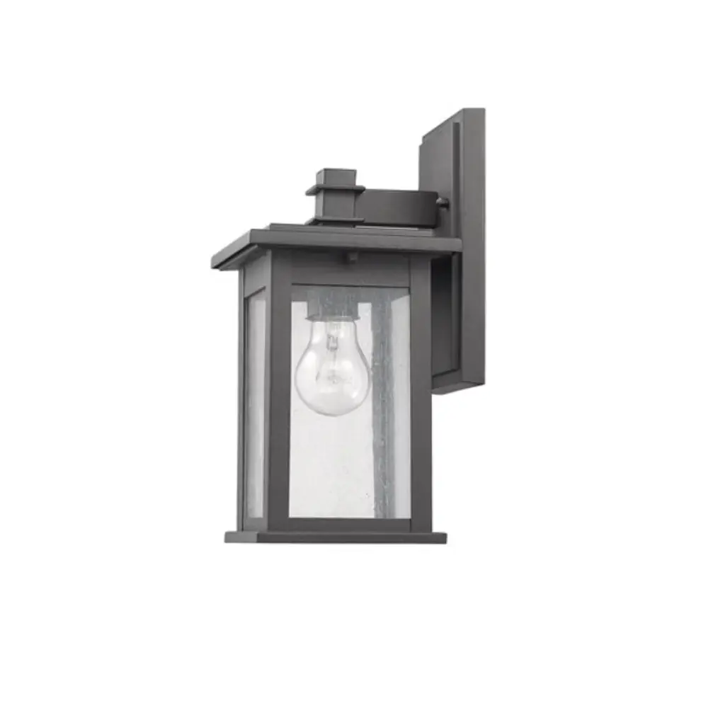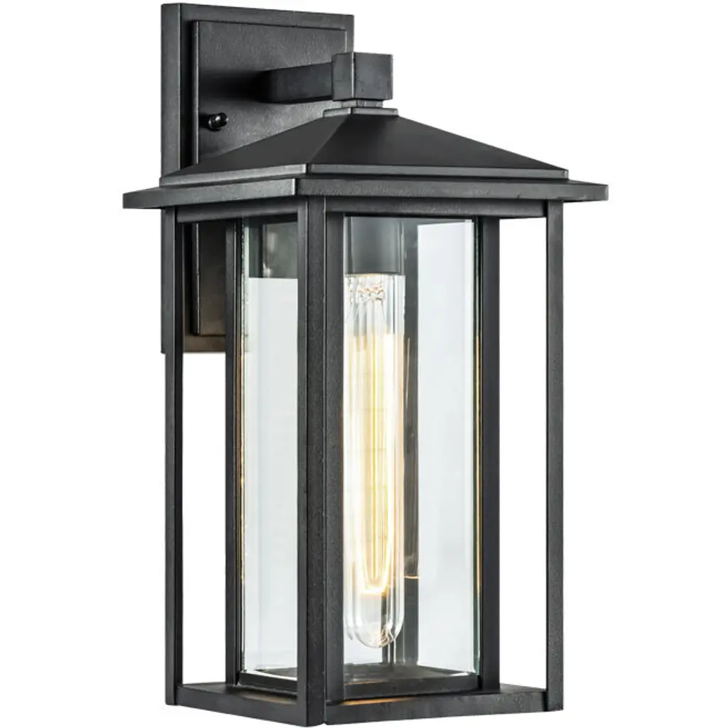 Brighten your exterior with the Chloe Lighting Tristan Outdoor Wall Sconce, a sleek 12″ black lantern-style fixture blending modern minimalism with classic lantern-inspired design. Crafted from durable metal with weather-resistant finish, its clear glass panels and exposed bulb design emit an inviting glow—perfect for entryways, patios, and garage facades. The versatile silhouette elevates transitional, Craftsman, and farmhouse-style homes with understated elegance and functional outdoor illumination. Key Features: Material: Powder-coated metal frame with clear tempered glass panes Color & Finish: Matte black for contemporary curb appeal Frame & Shade: Lantern-style backplate with rectangular prism glass shade Dimensions: 12″ H × 6.5″ W × 7″ D (approx. extension from wall) Bulb & Lighting: Single max‑60 W medium‑base bulb (not included) Weather Rating: Suitable for outdoor use under covered areas Style Compatibility: Complements transitional, Craftsman, modern farmhouse, and coastal exteriors