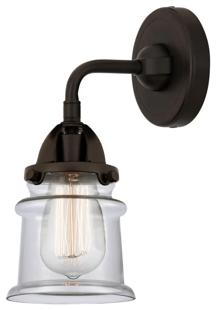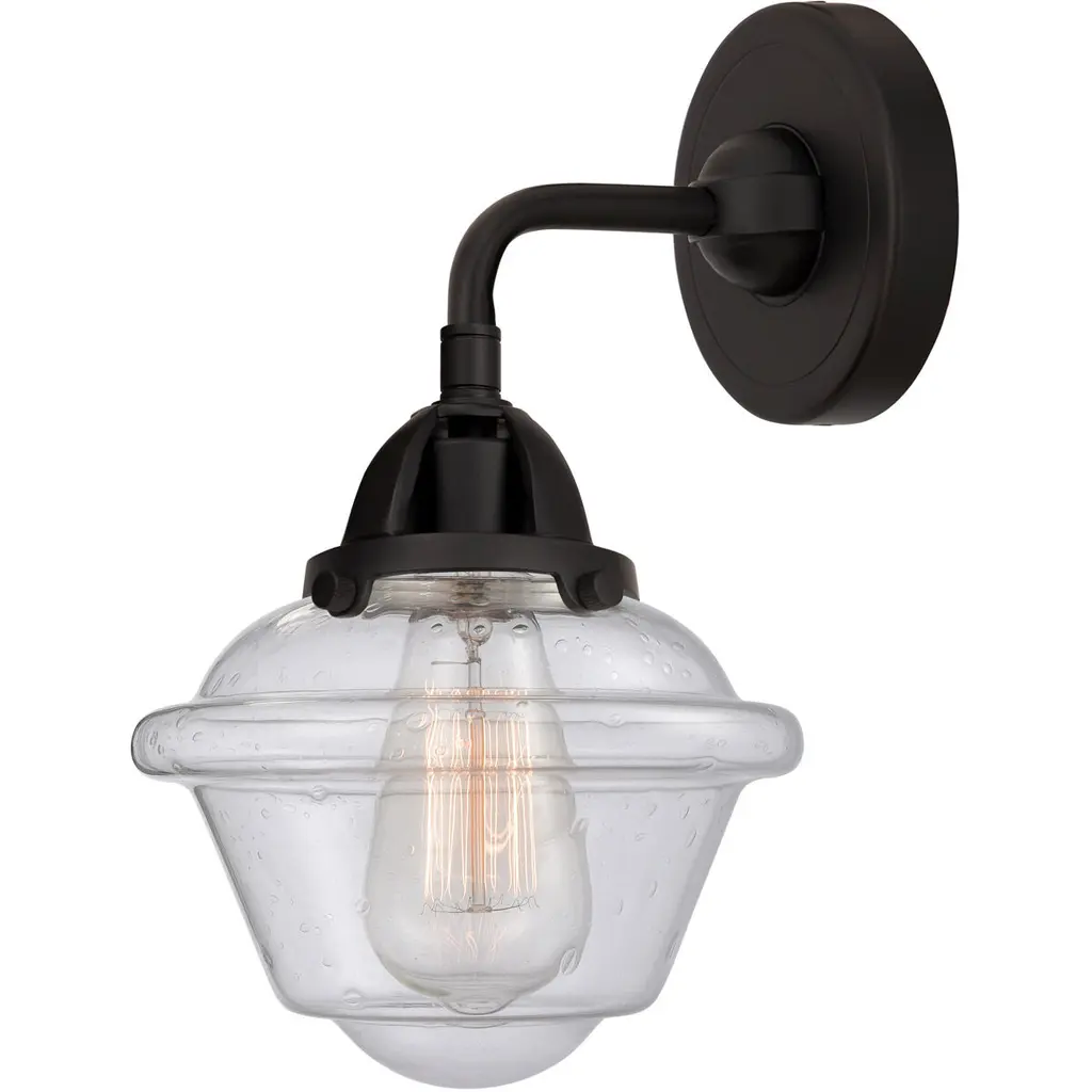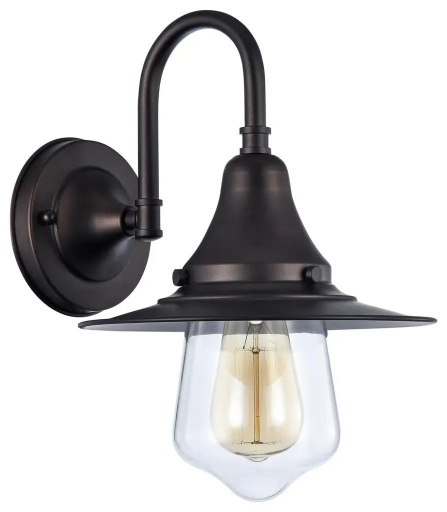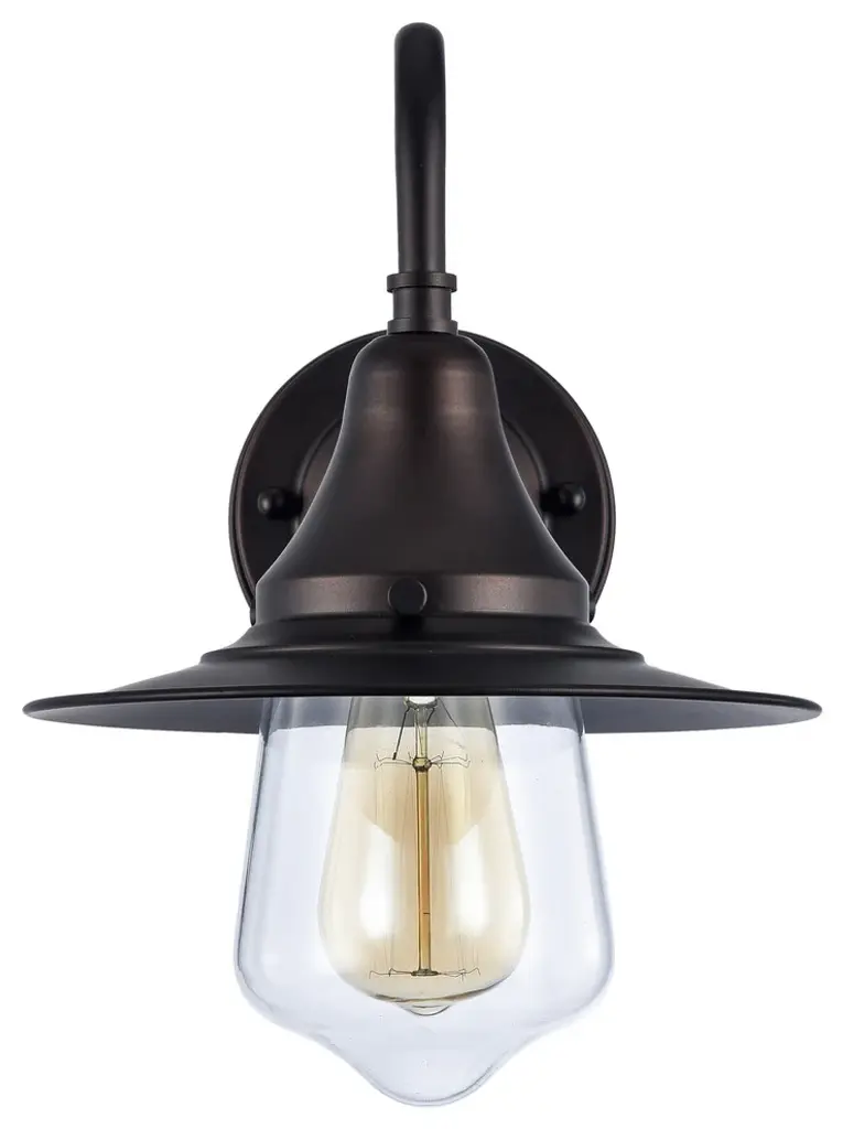This 1-light wall sconce features an oil rubbed bronze finish that will complement many industrial, urban, loft, and transitional decors. The matching metal shade adds interest while the clear glass allows the light to escape in all directions. One (1) 60 watt vintage Edison bulb included.(1) 100 Watt max E26 Type A Bulb (60w ST58 included)Hardwired, Wall outlet switchClear GlassDownlightIndoor Setting