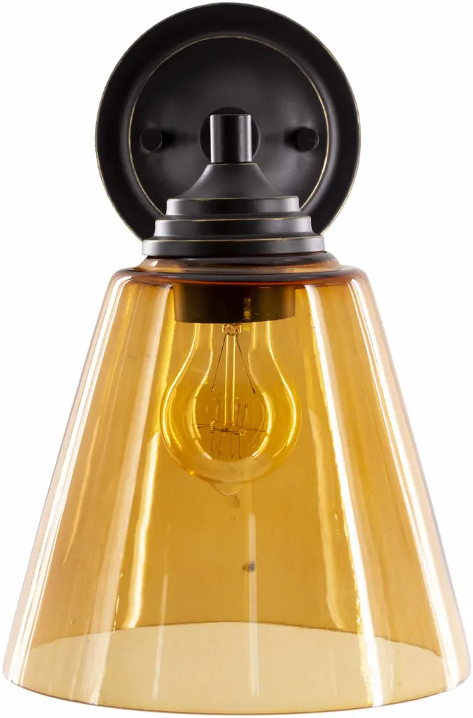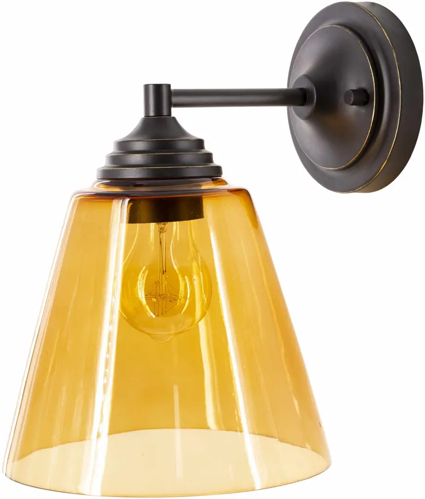 Collection: Chobham Colors: Mustard, Dark Red Material: Fixture: Glass,Fixture: Iron Styles: Southwestern Made In: China Lighting Type: Wall Sconce Base Color: Bronze, Amber Shade Color: AmberAmber Hanging Method: Rod Cord Length: 4' Number of Bulbs: 1 Socket Type: E-26 Bulb Wattage: 40W