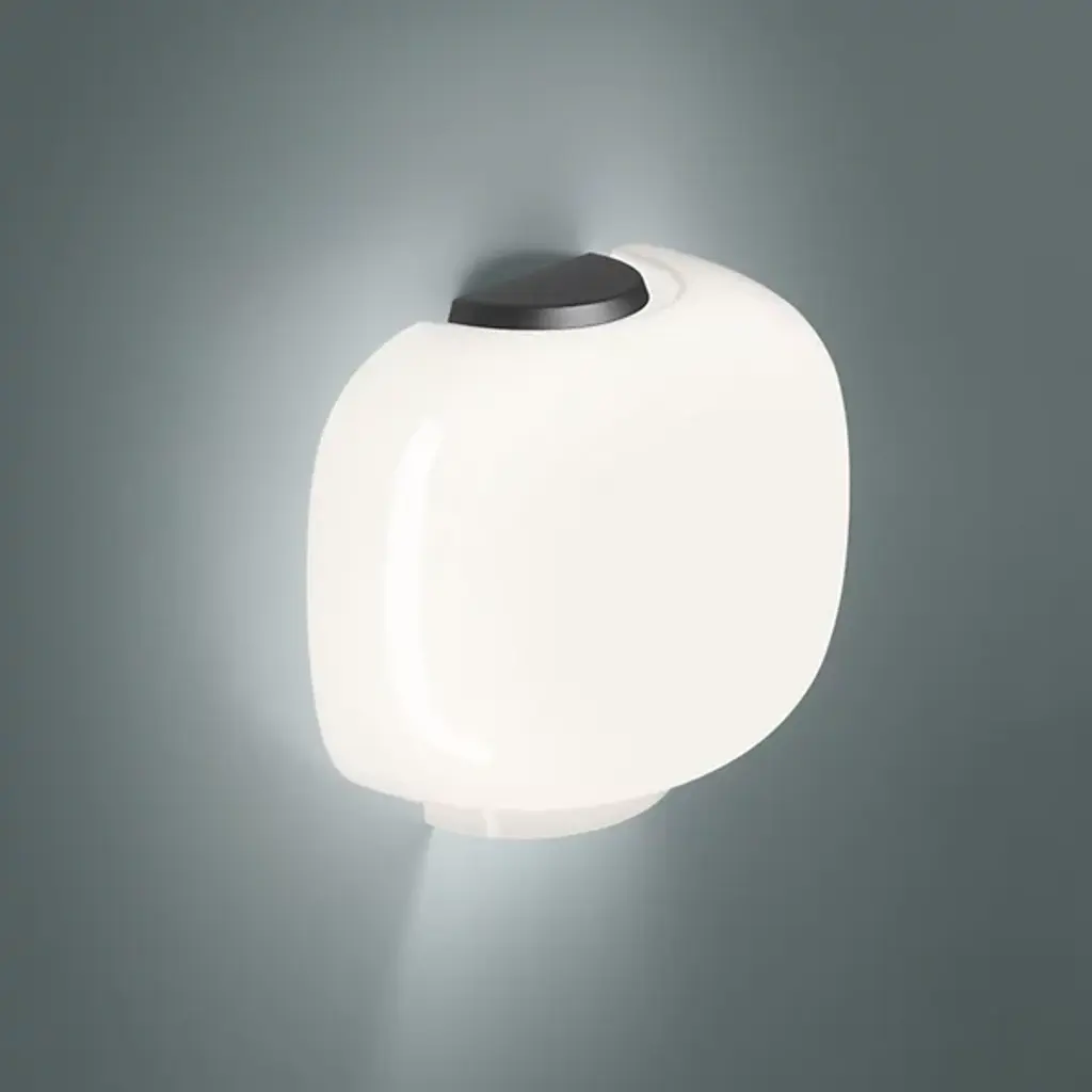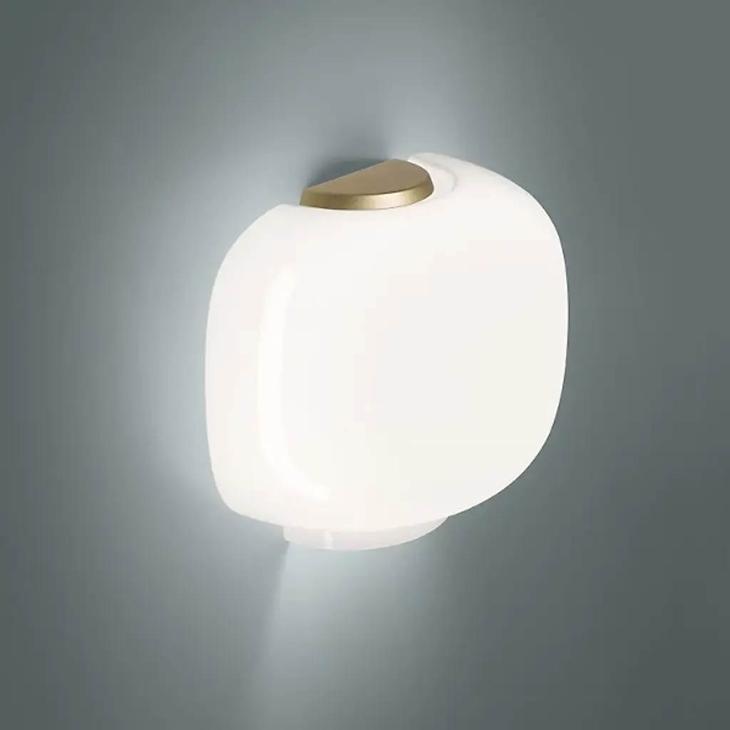 Add an inspired grace to your wall and hallway spaces with the Chouchin 3 Semi Wall Sconce from Foscarini. An elegant and appealing design from the mind of Ionna Vautrin, it relies on her recognized and independent experience to blend process with poetry. Anchored by a wall mount of bevel-ended varnished metal, a curving shade of blown glass sweeps down around the lamping, softening its bright glare into a pleasing, even glow that fills the shade and suffuses its surrounding area.