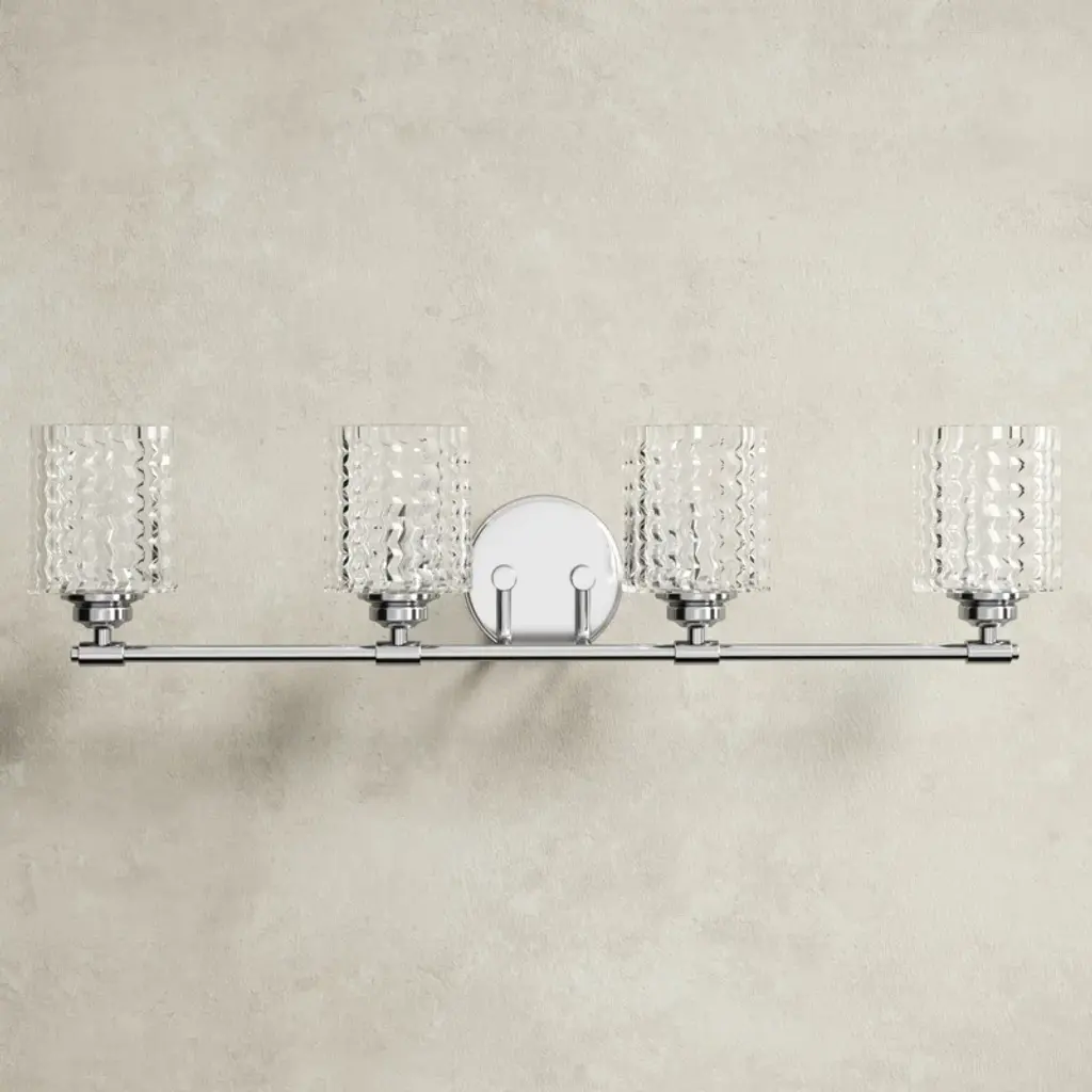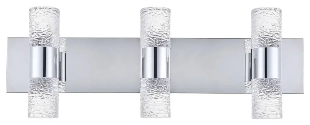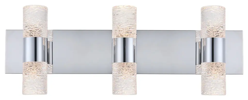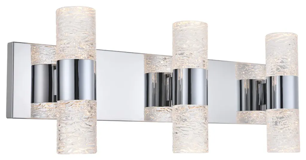 This resplendent 6 light wall sconce in a chrome finish will act as if a crown of light within your room. With light encased within the clear glass cylinder with delicate swirling designs, your room, whether it''s the hallway or bathroom will be exalted in stunning grandeur.Multi-sided with an unique appearance and distinctive lightingIllumination comes from a dimmable, integrated LED bulbCylinder shaped glass shadeChrome finish backplateLighting direction: up and downBulb wattage:3.5W; Max wattage:21WDry location rated