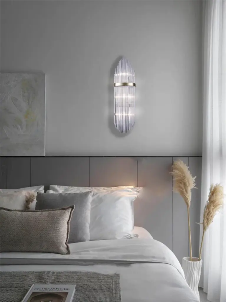 Chrome Frame, Clear Glass Rod Wall Sconce