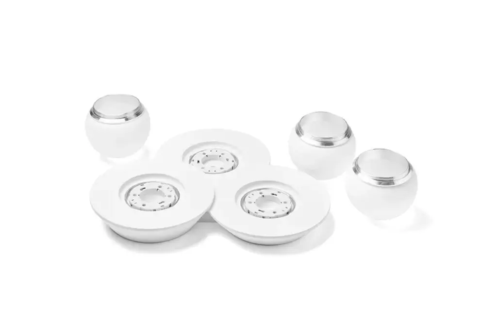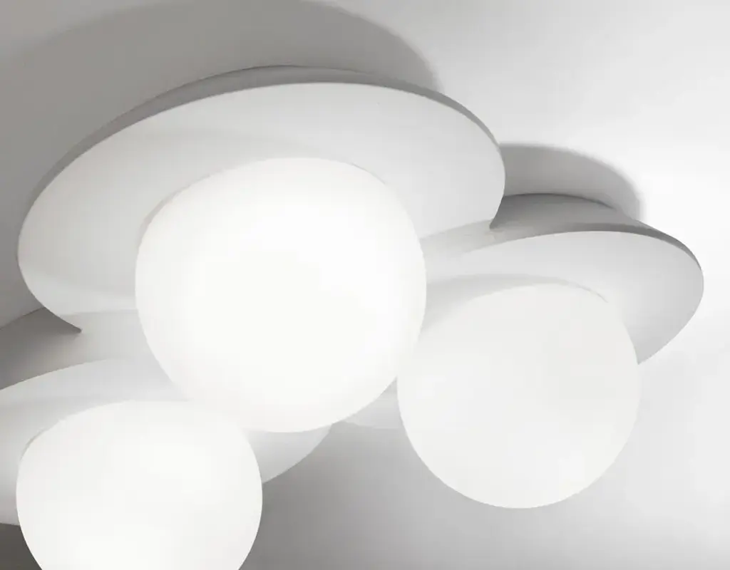 Cicladi Tonda is a wall/ceiling lamp made of plaster with a blown round glass. Equipped with three GX53 socket.