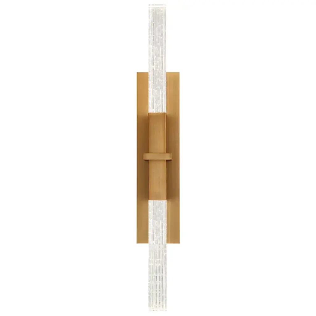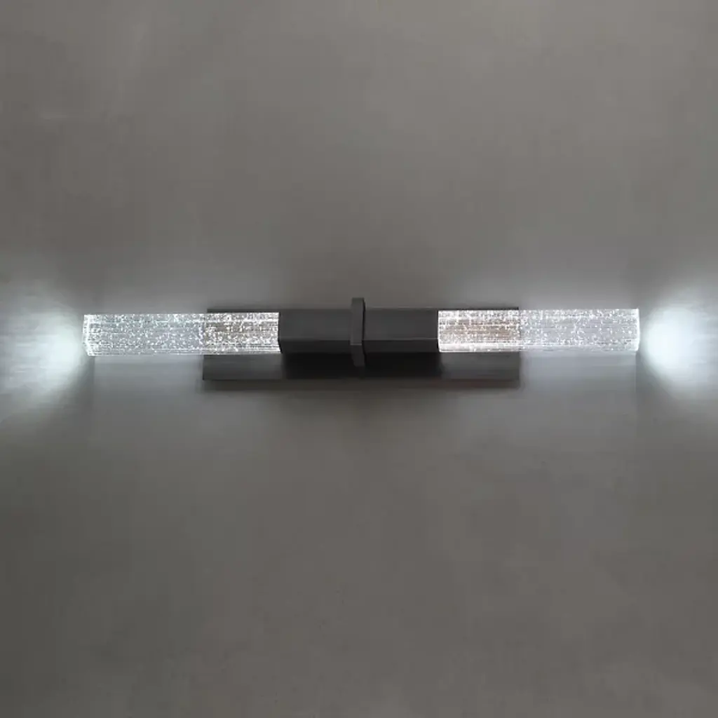 The Cinema LED Double Wall Sconce by Modern Forms features sharp, geometric lines and V-Cut K5 Seeded Crystal delivering design-minded style to your living space. The crystals create spectacular light play while diffusing light to surrounding areas. Welded for a seamless appearance. Dimmable with an ELV dimmer (not included) allowing for user input toward room ambiance. ADA compliant.