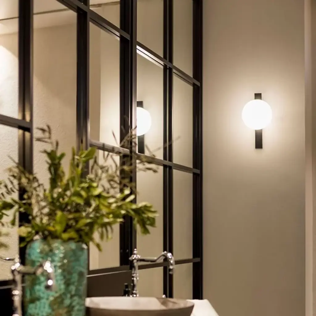 Illuminate your walls and hallways with the cleverly constructed Circ LED Wall Sconce by Estiluz. A simple structure made in Spain and designed by Nahtrang Studio, it is made following their philosophy of asymmetrical balance. Simple, functional, and refined, it starts with a vertical bar wall mount of wrought iron and sets an integrated LED under a spherical glass shade that mellows bright glare into a pleasant ambiance. Finally, the fixture is damp listed and durable, meaning it can function in any indoor environment, whether flanking bathroom mirrors or brightening an entryway.
