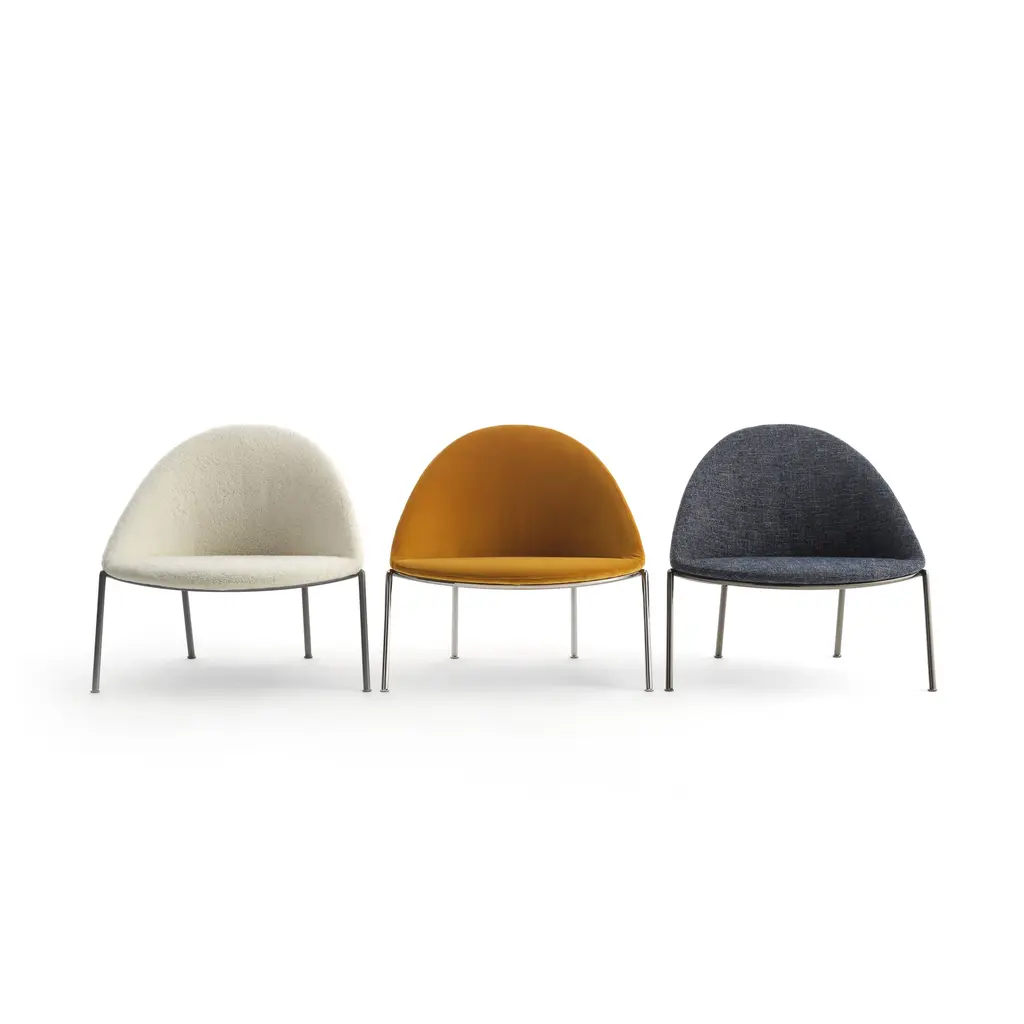 Circa’s flowing shape envelops the body and provides impressive comfort within a small footprint in the expanded lounge chair. A responsive webbing seat is concealed within the formed foam and cradles the sitter, sturdily ensconced on an angled steel base in a choice of finishes. Handsomely made in Italy, the distinctive arc silhouette and waterfall seat cushion are defined by a sumptuous range of upholstery textiles and leather.