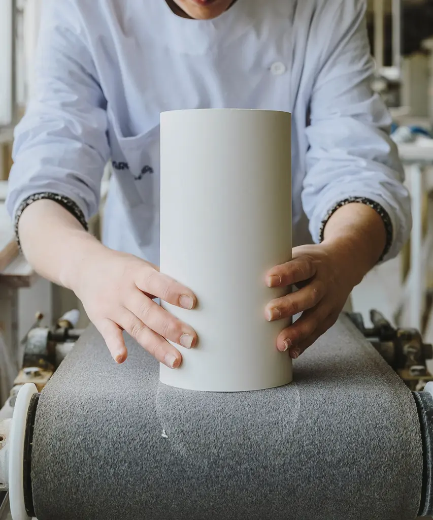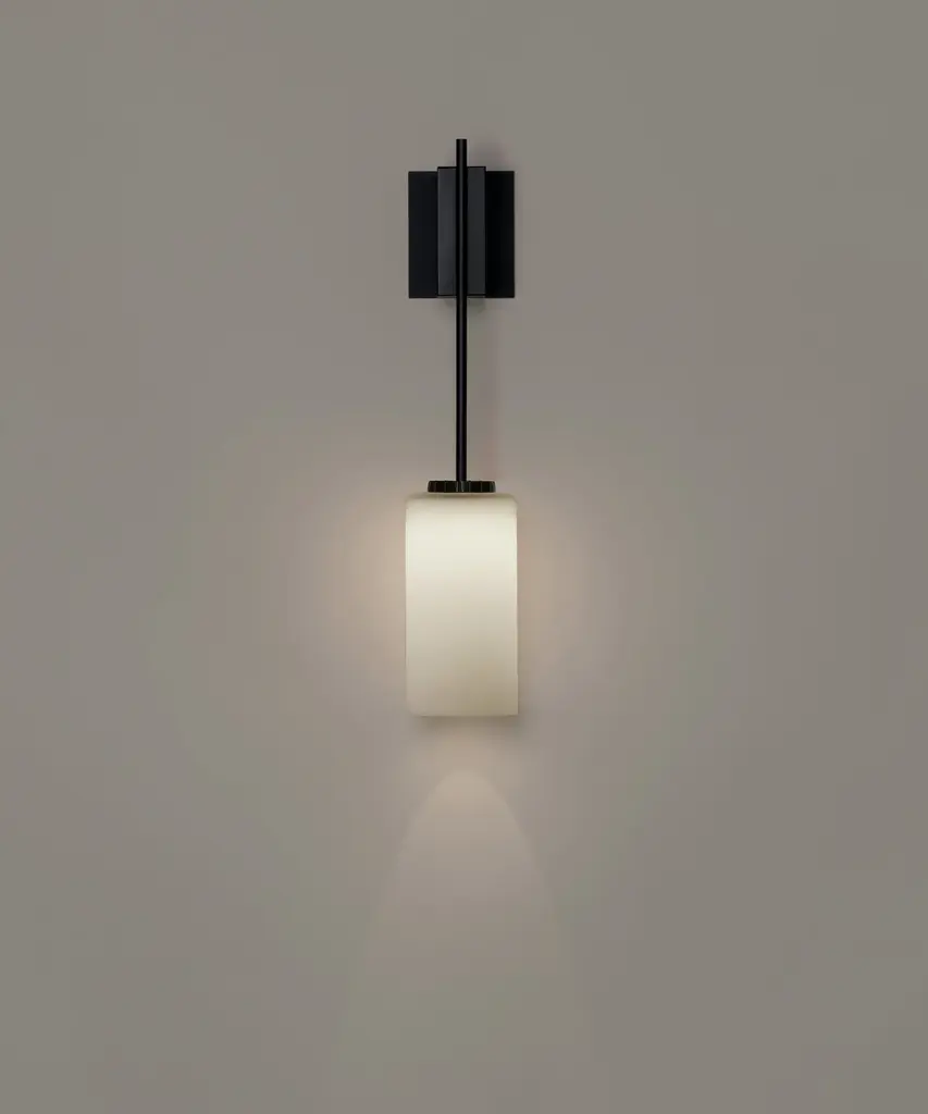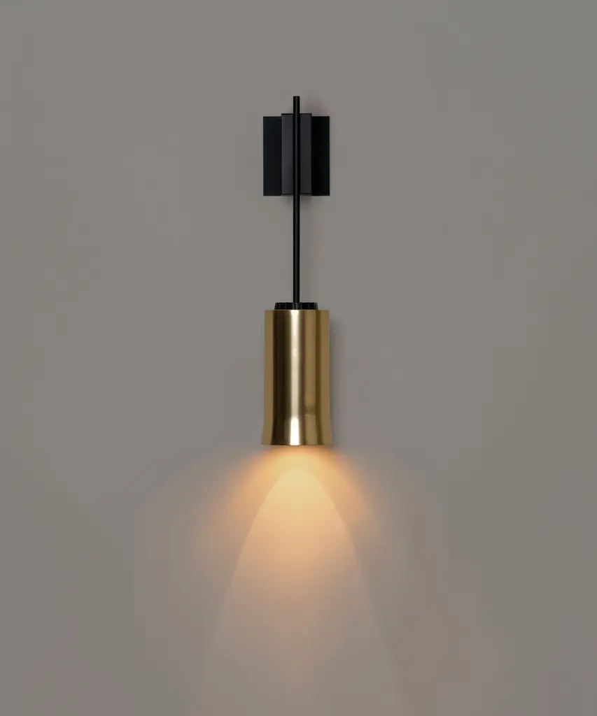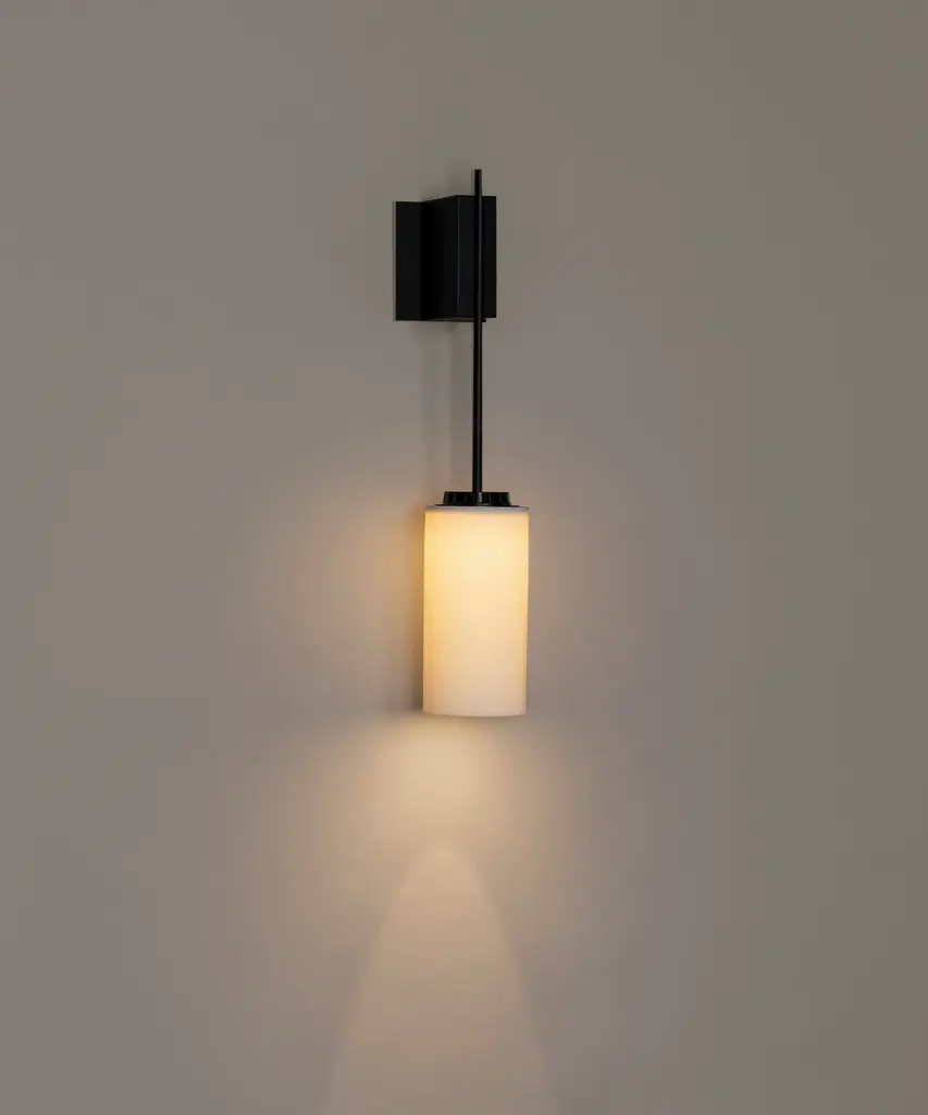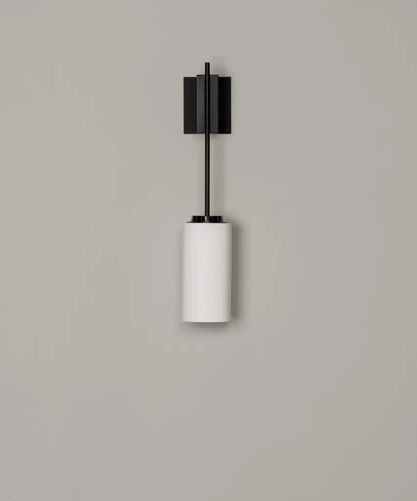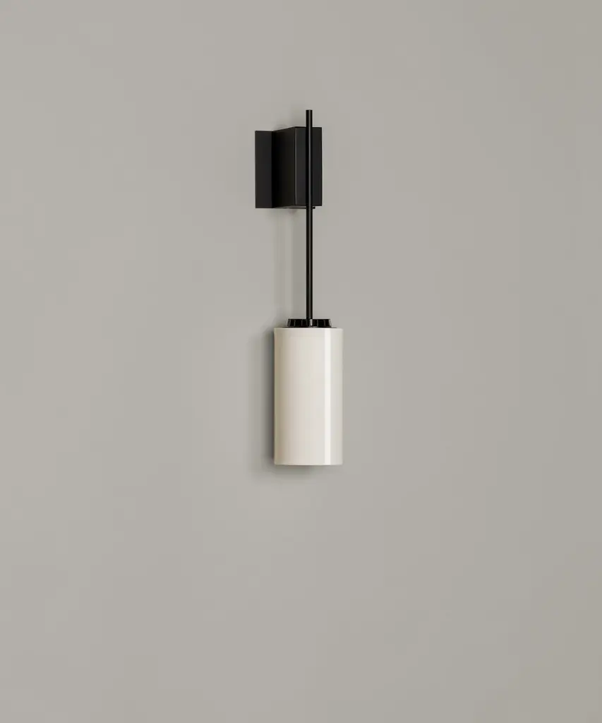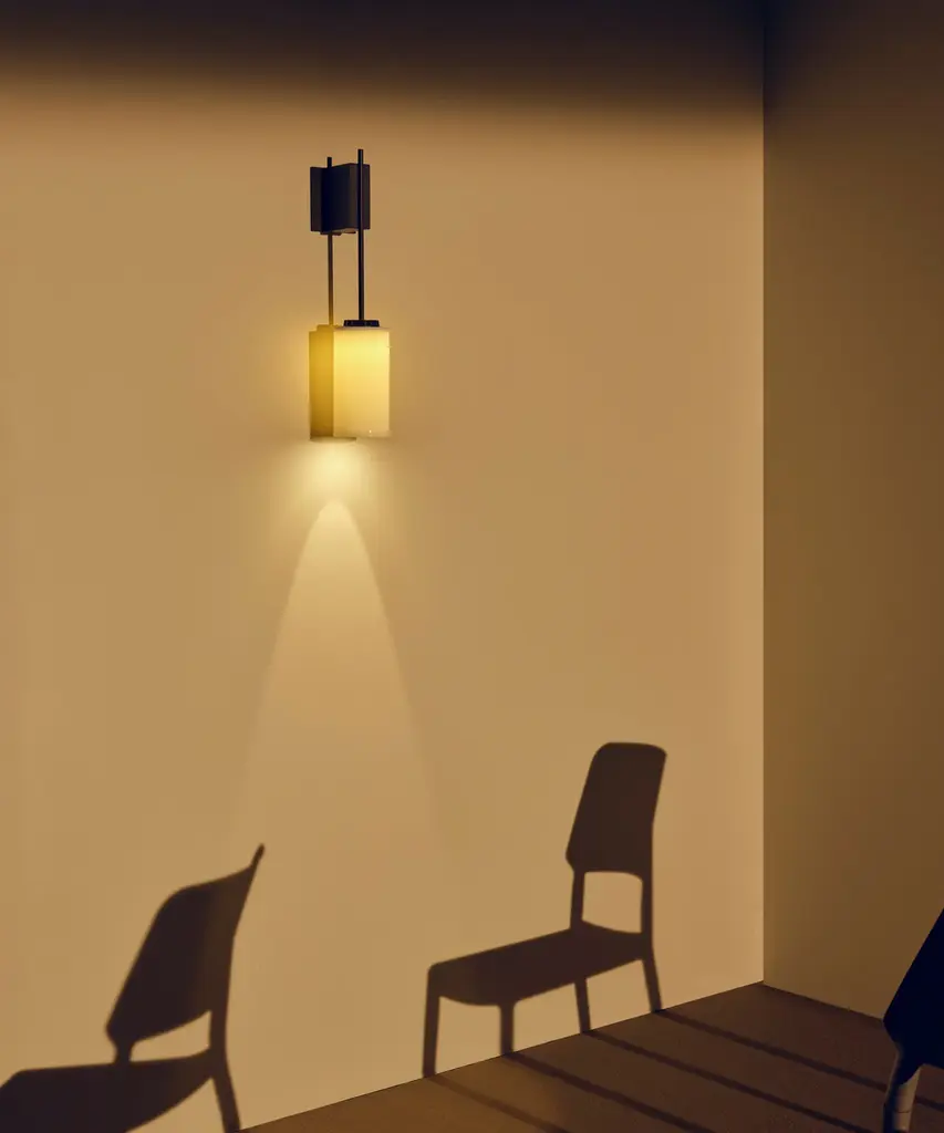 The Cirio wall lamp version allows the light to be placed closer to the user. And this is how a succession of rhythms is created that, in repetition, mark the paths. The lampshades, in polished brass, porcelain, or opal glass, are supported by an elegant and subtle aluminum line. Produced by the Barcelona-based lighting purveyor, Santa & Cole.
