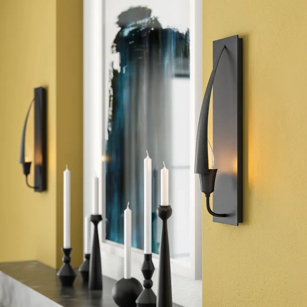 This sconce complements a Cirque collection sconce or a bold design statement. Hand-forged steel is shaped into a tapered point that shades and reflects the light to cast a warm, elegant glow -handcrafted by Vermont artisans. All Hubbardton Forge products are hand-crafted to last one at a time in Vermont.