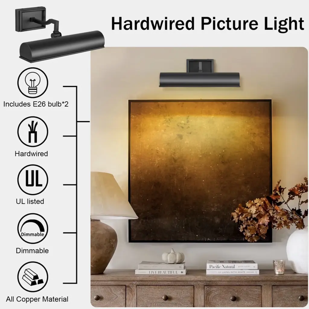 Crafted from heavy-duty metal, this picture light combines timeless elegance with durability. Designed to cast a flawless, gallery-quality glow on your artwork, its adjustable head lets you direct light exactly where it’s needed, making colors pop, textures stand out, and every detail shine. Whether you're highlighting a treasured oil painting, a cherished family photo, or your favorite wall decor, this light adds a touch of class and adaptable style to any room.