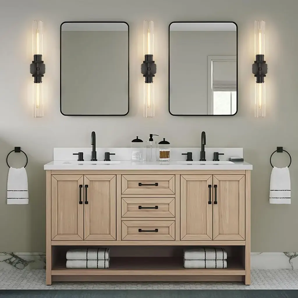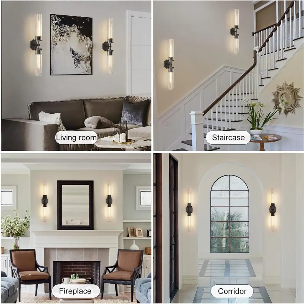 Cityfurn 2-light Modern Black Wall Sconce With Crystal Glass