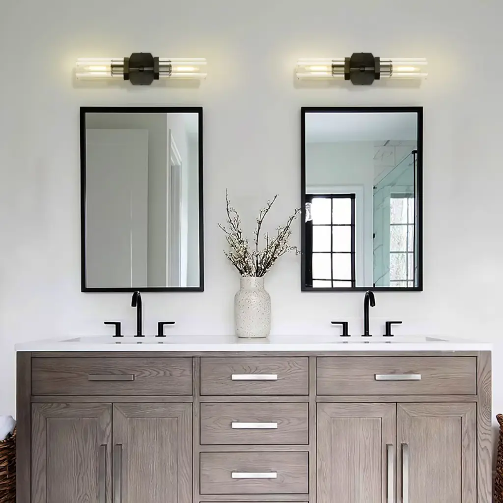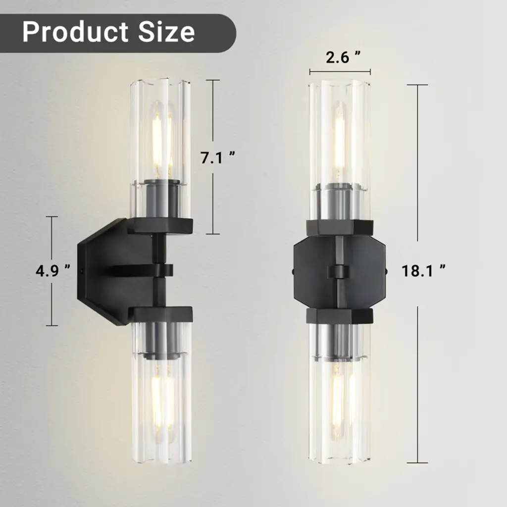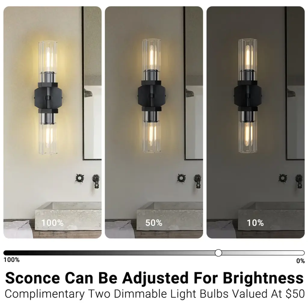 Cityfurn 2-light Modern Black Wall Sconce With Glass Shades