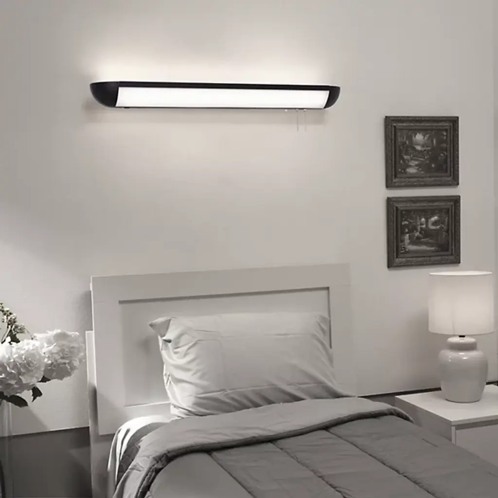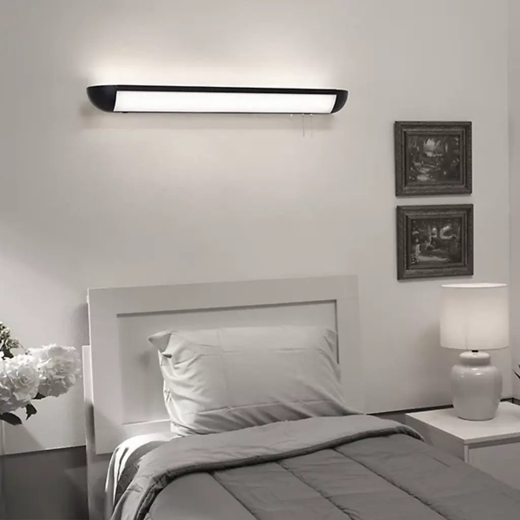 Enhance your bedroom with AFX Lighting's tasteful Clairemont LED Overbed Wall Sconce. This modern fixture features a linear profile made from robust steel, paired with an Integrated LED light source. The interior acrylic shade smoothens and distributes light evenly, ensuring your restful night's sleep isn't disrupted, and the subtle night light offers gentle illumination for a soothing ambiance. Though it has a water-resistant rating that allows for use in damp locations, this piece is best suited for bedroom use.