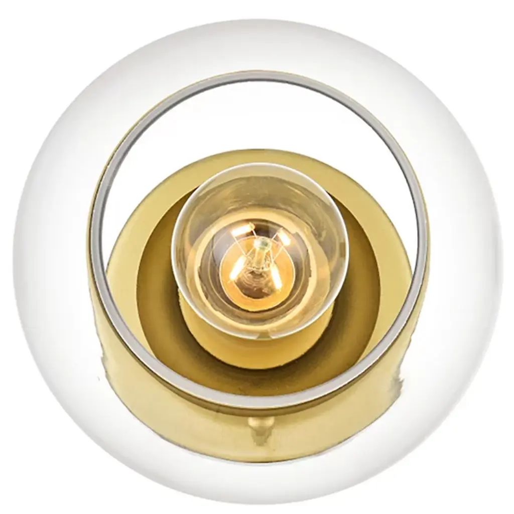Add vibrant brightness to bathroom spaces with the Clarinda Bath Wall Sconce from Alder & Ore, a damp-listed lighting solution. A layered design fashioned from durable iron with a clear glass shade, this modern vanity light adds contemporary flair to your space. The streamlined silhouette and smooth finish give it a mid-century modern look. The circular backplate connects to one lamp set within a clear glass globe shade, allowing a mix of direct light and welcoming warmth to enhance your bathroom ambiance.
