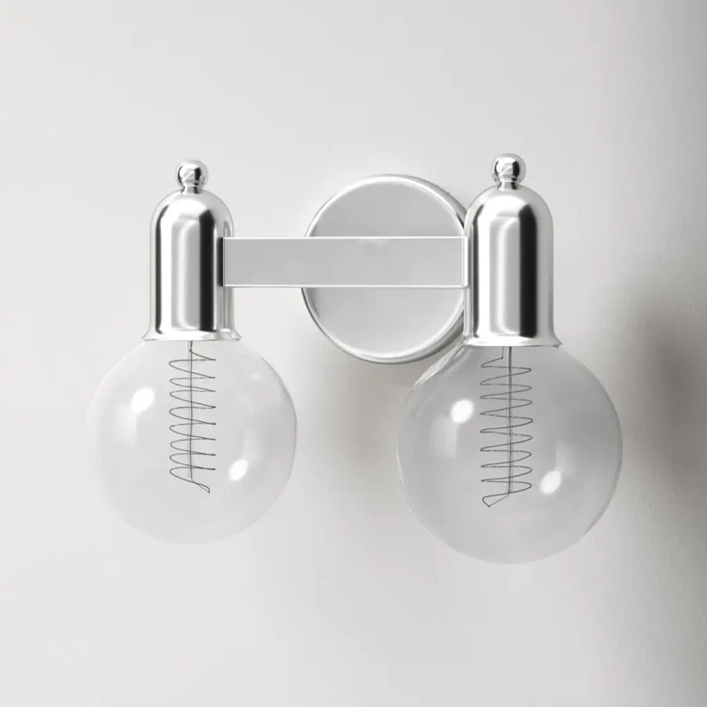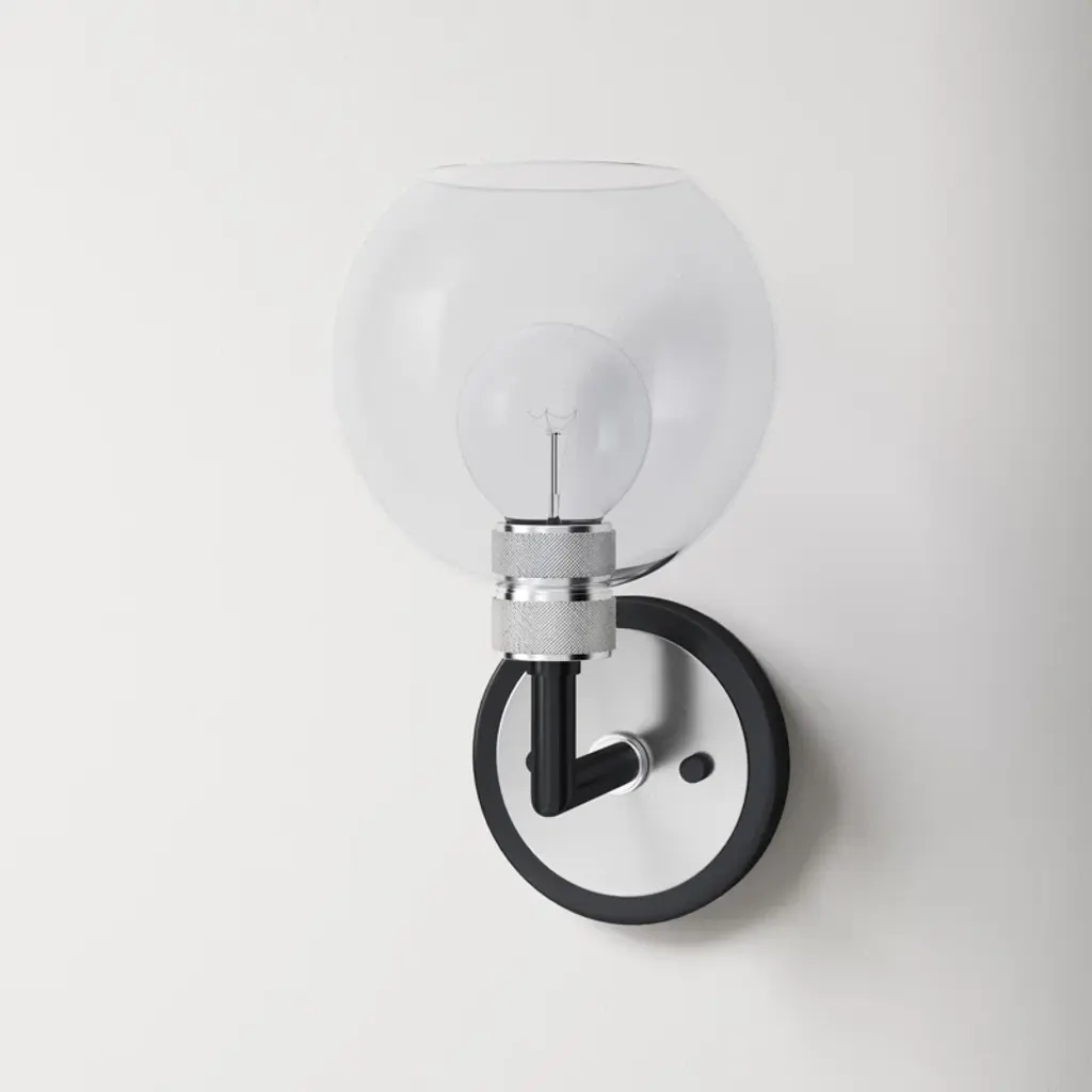 Add vibrant brightness to bathroom spaces with the Clarinda Bath Wall Sconce from Alder & Ore, a damp-listed lighting solution. A layered design fashioned from durable iron with a clear glass shade, this modern vanity light adds contemporary flair to your space. The streamlined silhouette and smooth finish give it a mid-century modern look. The circular backplate connects to one lamp set within a clear glass globe shade, allowing a mix of direct light and welcoming warmth to enhance your bathroom ambiance.