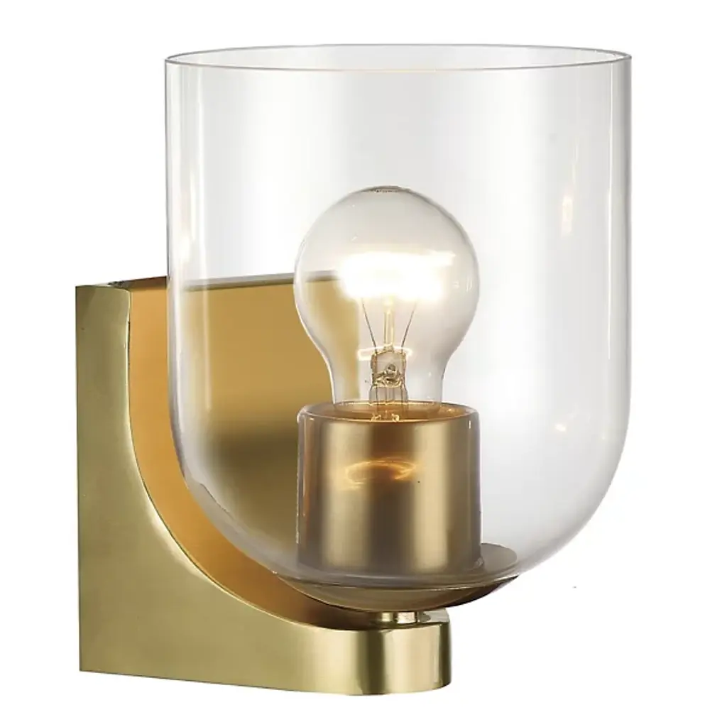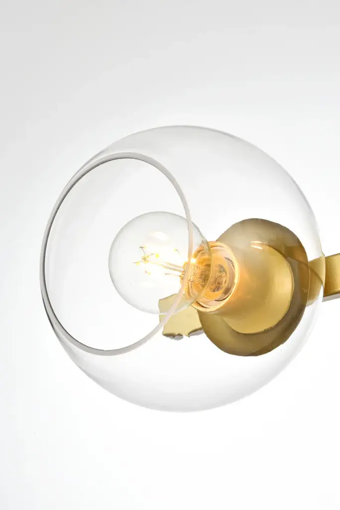 Add vibrant brightness to bathroom spaces with the Clarinda Bath Wall Sconce from Alder & Ore, a damp-listed lighting solution. A layered design fashioned from durable iron with a clear glass shade, this modern vanity light adds contemporary flair to your space. The streamlined silhouette and smooth finish give it a mid-century modern look. The circular backplate connects to one lamp set within a clear glass globe shade, allowing a mix of direct light and welcoming warmth to enhance your bathroom ambiance.