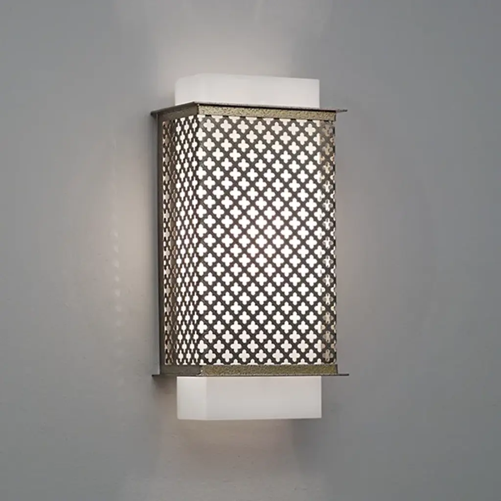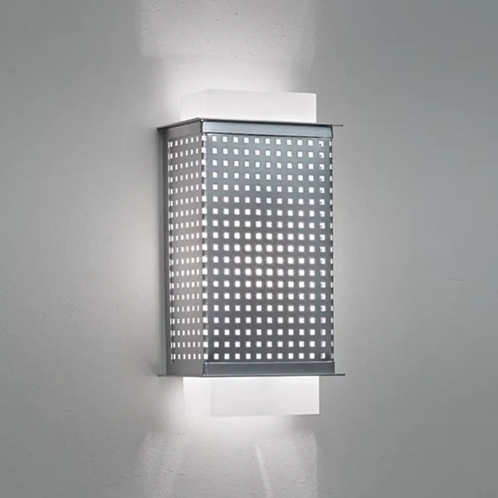 The Ultralights Clarus Square Wall Sconce is a fusion of contemporary and traditional styles. A metal cage with an all over pattern covers a solid Acrylic diffuser in a rectangle shape. The illumination comes from both the top and bottom of the diffuser as well as penetrating through the metal cut outs with a sense of purpose.