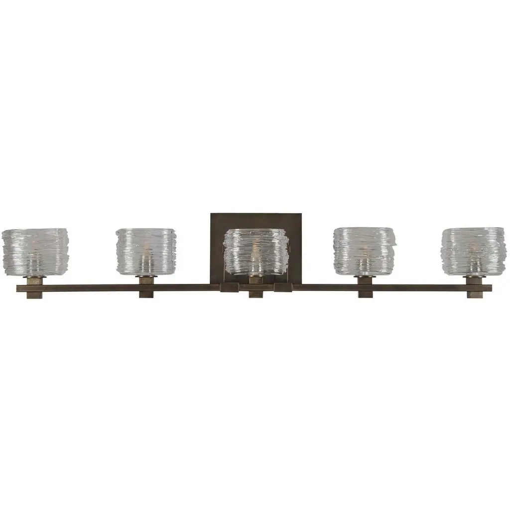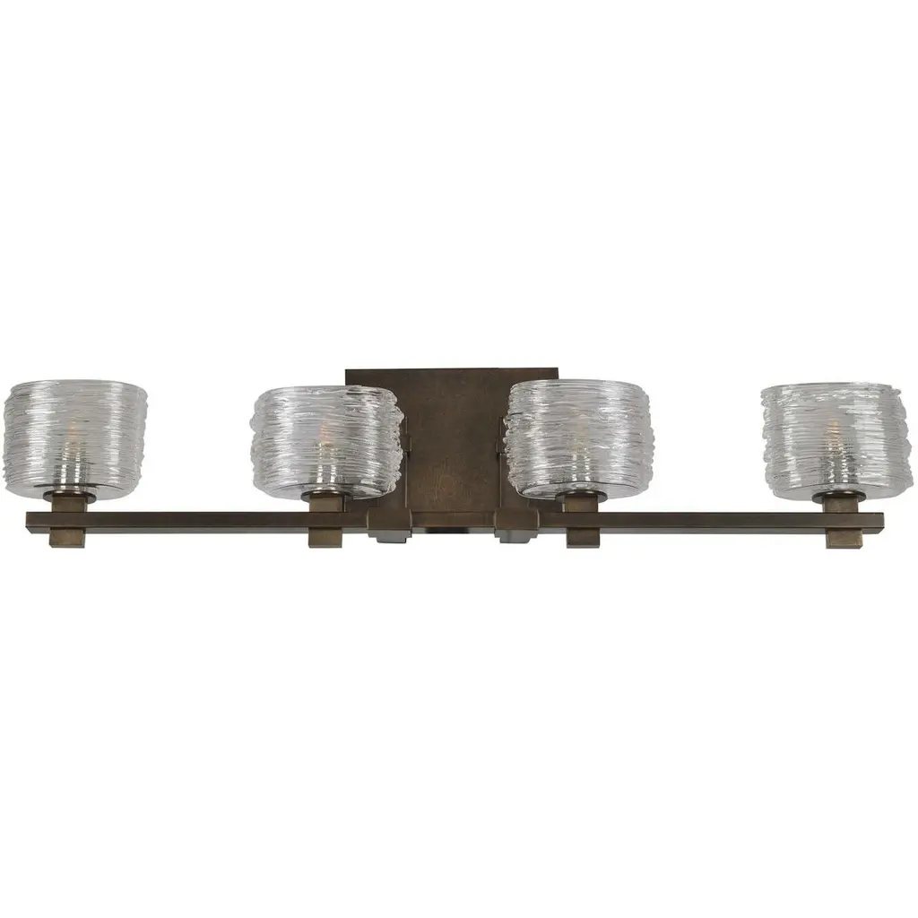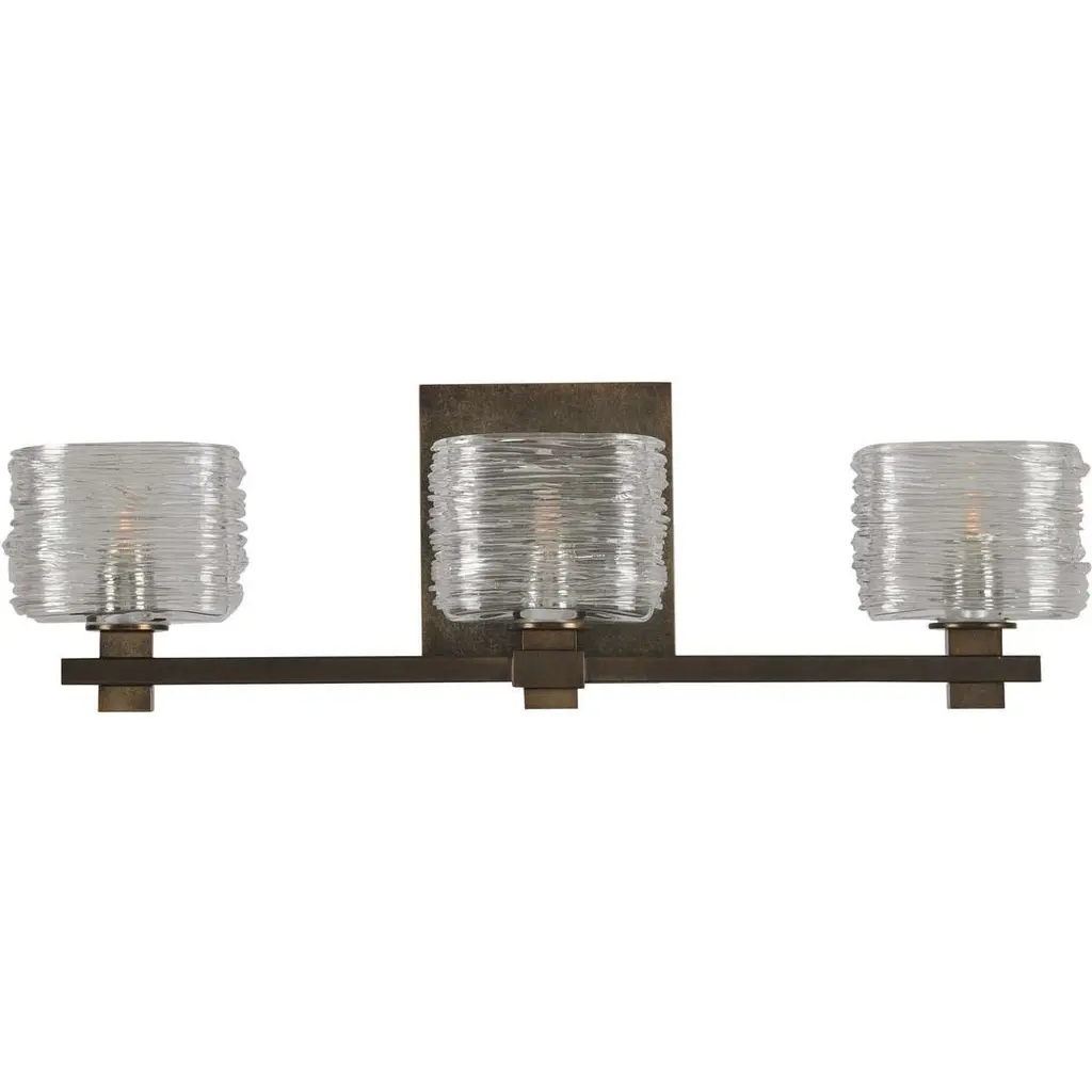 Enhance your bathroom"™s allure with the Clearwater 2 Light Bath fixture, a captivating blend of classic style and vintage appeal. This sophisticated lighting solution stands out with its vintage bronze finish and spun glass design, making a bold statement while illuminating with elegance. Constructed from heavy gauge steel, this fixture is as durable as it is stylish, featuring delicate detailing on the arms and defined holders that mimic timeless artistry. The fixture houses two G9 LED bulbs, casting a comforting glow in a 3000K color temperature, which is perfect for any routine - be it your morning rush or a calming evening soak. Both functional and stylish, the light measures 6.50 inches in height, 13.50 inches in width, and 4 inches in depth, fitting seamlessly above standard bathroom mirrors or vanities. With an easy installation process, supported by a 6-inch wire and a thoughtfully designed backplate and canopy, this fixture guarantees practical elegance. Engineered to meet the highest standards, it"™s cETL-listed and indoor rated for dry locations, assuring both safety and performance. - Dimensions: 6.50H x 13.50W x 4D inches - Condition: New - Material: Spun Glass, Heavy Gauge Steel - Color: 3000K Bulb, Vintage Bronze - Style: Classic, Vintage - Bulb Type: G9 LED, 3W each - Features: cETL-Listed, Indoor Rated, Dry Rated