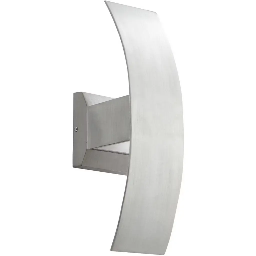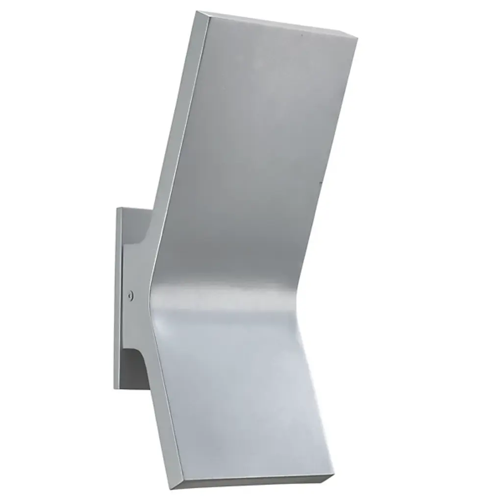 The Claud LED Outdoor Wall Sconce from Huxe elevates the façade of one's home with a design rooted in modern sculpture. Clear-cut edges and seamless curves mark the appearance of the steel construction. The two-pronged approach to the housing helps to delineate 2 geometric panels of LED lighting concealed in the backside of the piece. Ambient light filters through a frosted diffuser, presenting as a warm glaze over the square backplate and as a soft, 2-part illumination along its accompanying wall.