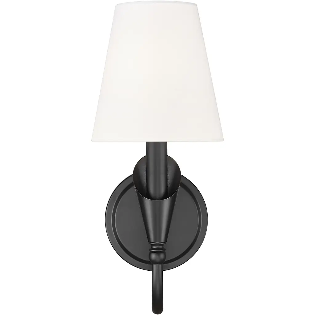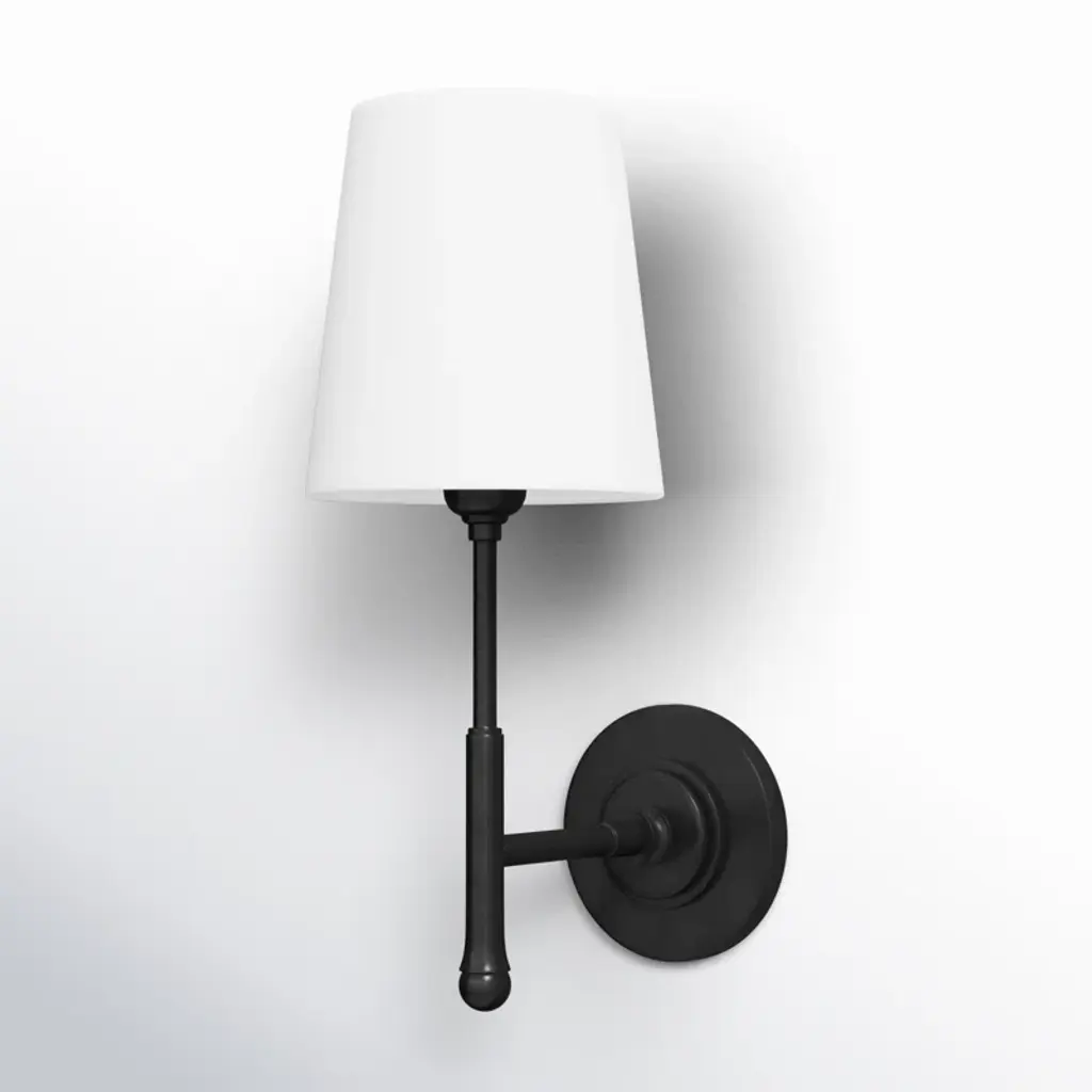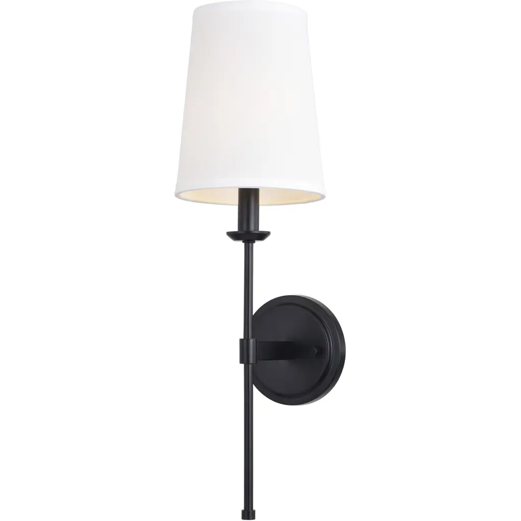 Where simplicity meets fluid design, this sconce brings a poetic silhouette to the everyday. Its slim matte black arm arcs gracefully under a white fabric shade, adding a gentle curve to any vertical space. Perfect for modern or transitional settings, its a small fixture with big design presence.