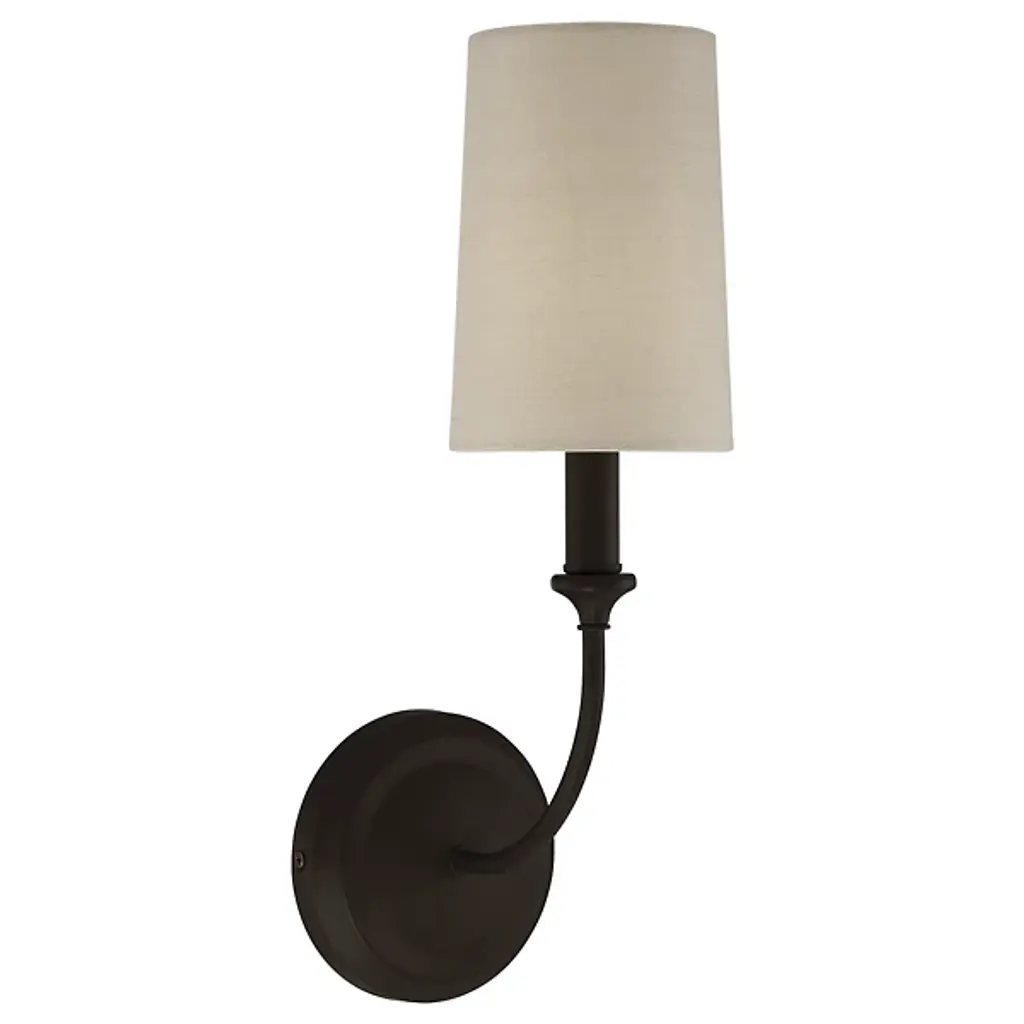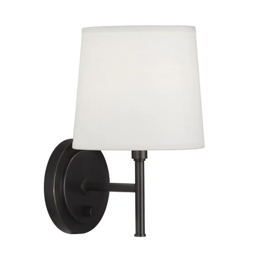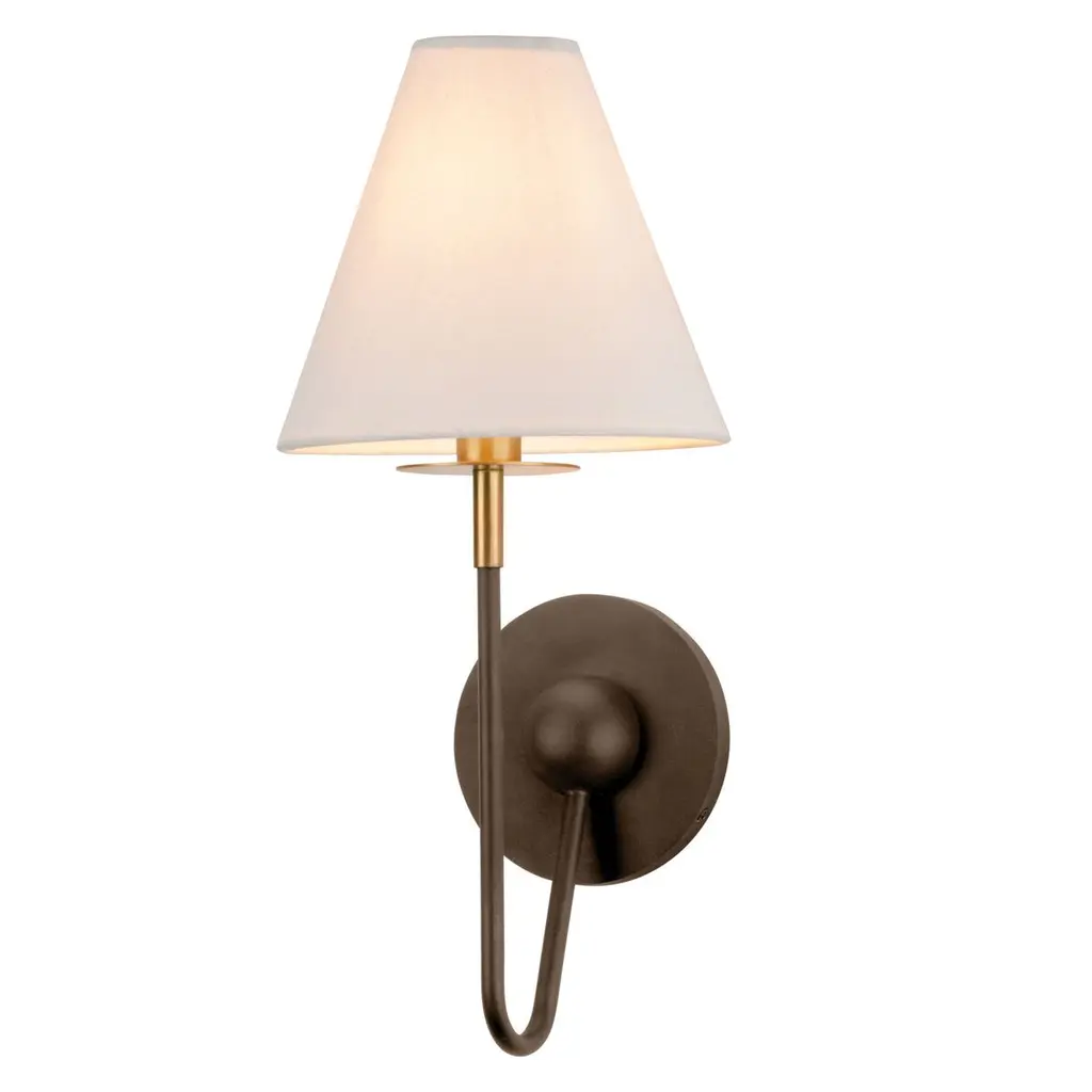 Where simplicity meets fluid design, this sconce brings a poetic silhouette to the everyday. Its slim matte black arm arcs gracefully under a white fabric shade, adding a gentle curve to any vertical space. Perfect for modern or transitional settings, its a small fixture with big design presence.