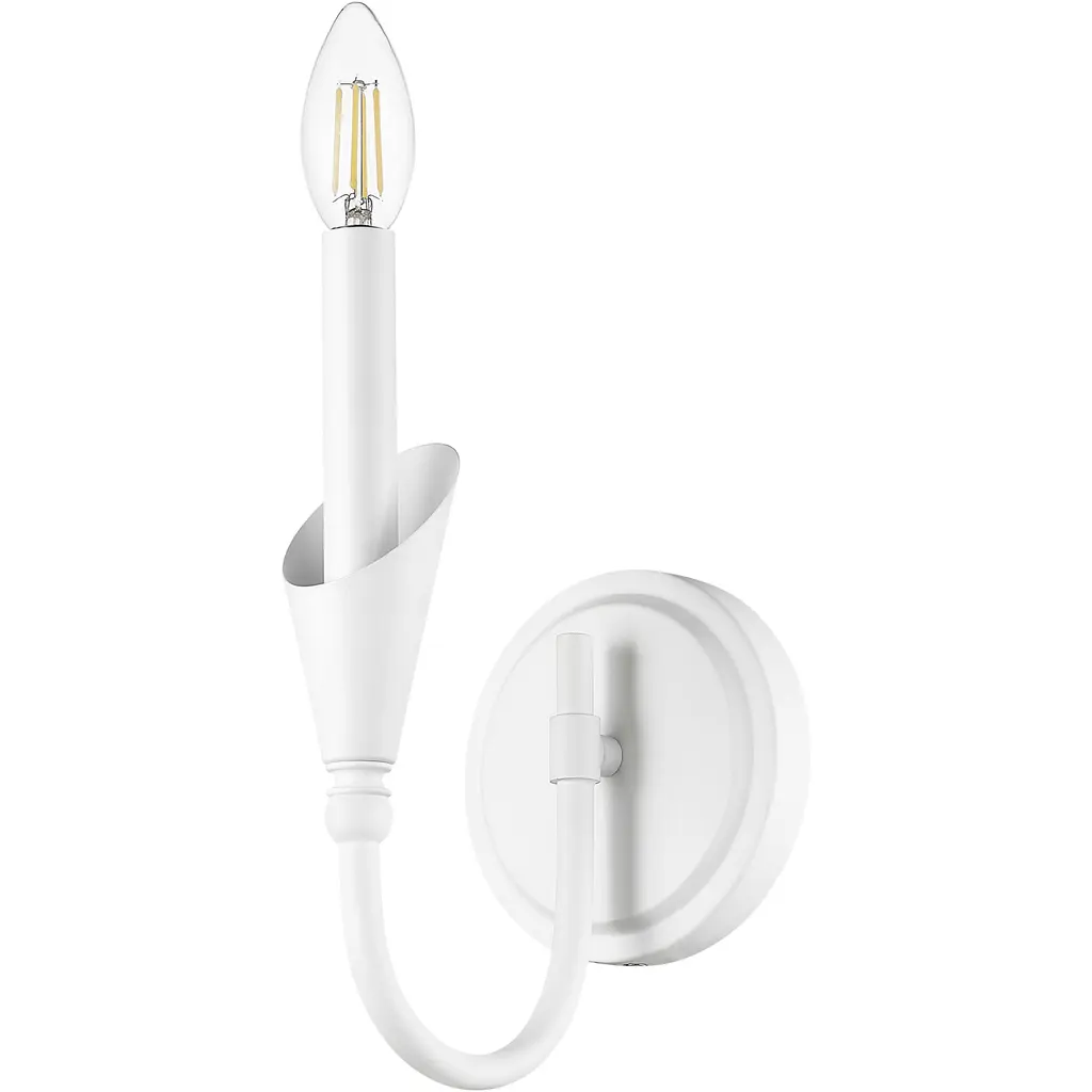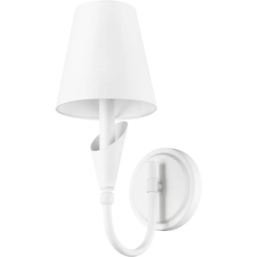 Soft to the eye and elegant in motion, this sconce delivers beauty in the smallest of forms. The textured white arm flows upward with quiet grace, cradling a white fabric shade that casts a gentle, flattering glow. It is a natural fit for light-filled interiors, coastal palettes, or romantic corners.