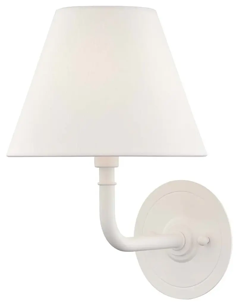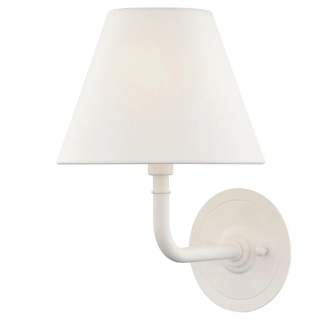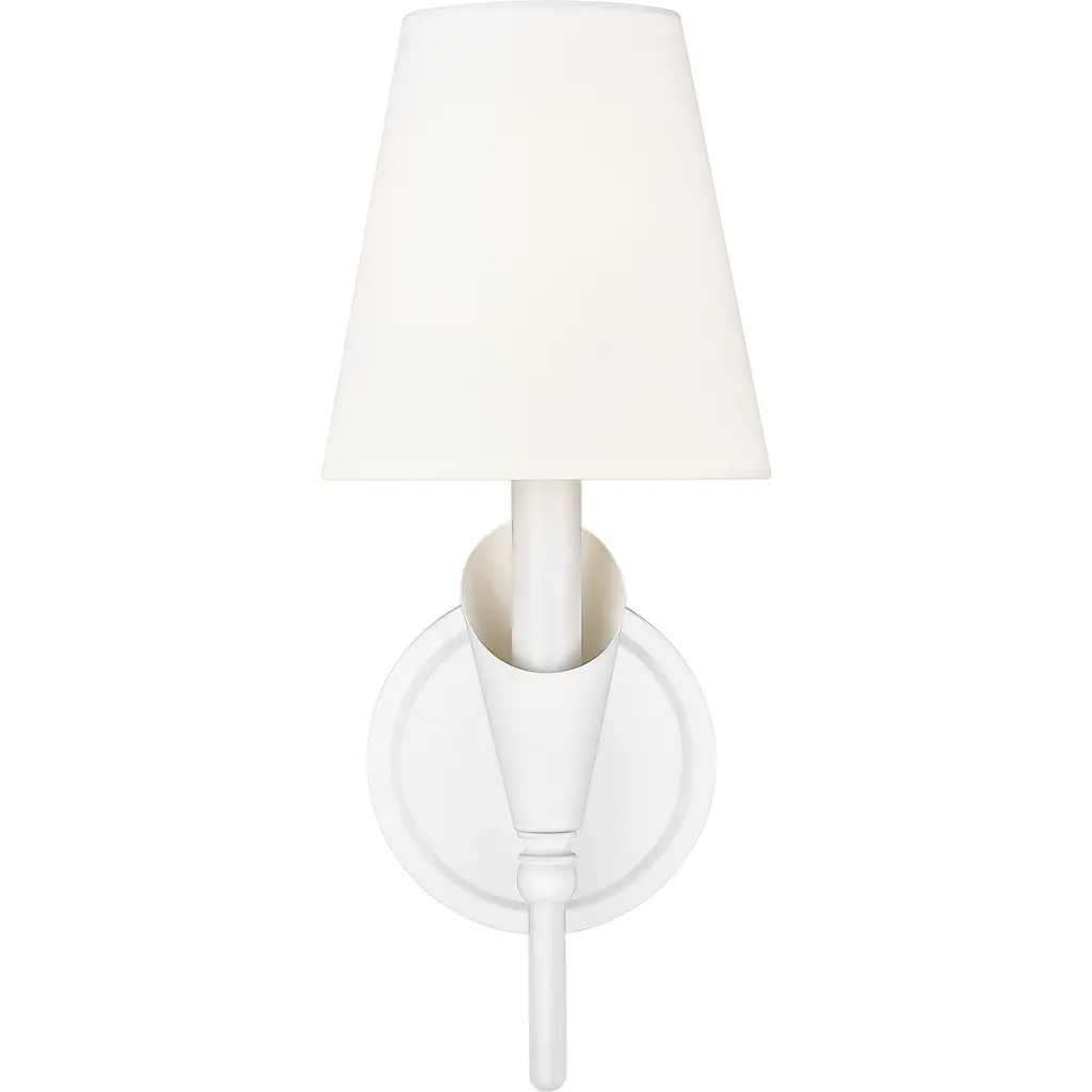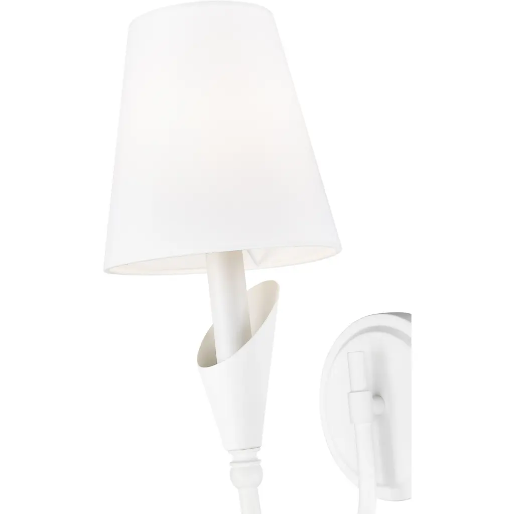 Soft to the eye and elegant in motion, this sconce delivers beauty in the smallest of forms. The textured white arm flows upward with quiet grace, cradling a white fabric shade that casts a gentle, flattering glow. It is a natural fit for light-filled interiors, coastal palettes, or romantic corners.