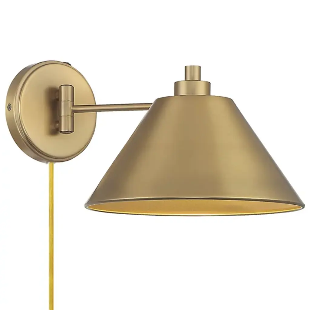 The Clemente Wall Sconce by Visual Comfort Signature, formerly known as Visual Comfort, provides simple, stylish lighting with a dash of transitional flair. Its design features an adjustable conical shade with distinct interior and exterior finishes that stand out beautifully once the fixture is lit. An angled arm and circular wallplate provide support while adding a rustic aesthetic that leaves a lasting impression.
