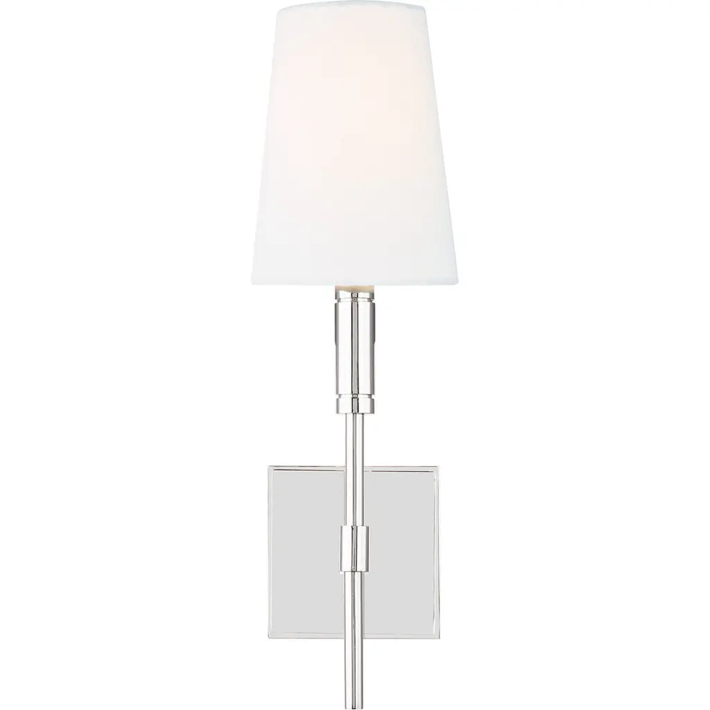 A striking light source for the home. Enhance a space with the Clifton Wall Sconce by Crystorama. Its sword-like base adds dramatic beauty to a wall and is crafted from steel for sturdy support, while the petite fabric drum shade delivers diffused illumination in an elegant way. A statement piece perfect for an entryway, living room or bedroom, this wall lamp is a chic addition to a transitional décor.